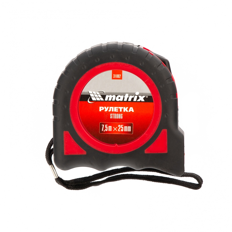 Шт рулетка strong,7,5 м х 25 мм,обрезиненный корпус matrix. Бренд: Matrix Измерительная шкала: метрическая Материал корпуса: двухкомпонентный Материал ленты: сталь Особенности: обрезиненный корпус Страна производства: Китай Длина, м: 7.5 Тип упаковки: подвесная карта Длина в упаковке, мм: 145 Ширина в упаковке, мм: 110 Вес (брутто), кг: 0.37 Рулетка: 1 шт Рулетка Matrix Strong 31082 с измерительной лентой длиной 7,5 м и шириной 25 мм, в обрезиненном корпусе, предназначена для определения размеров и расстояний. Частично обрезиненный корпус из ударопрочного ABS-пластика устойчив к повреждениям, что уменьшает риск его поломки в случае падения или удара. Стальная лента с зацепом, прикрепленным заклепками, рассчитана на длительное использование. Рулетка пригодится на строительной площадке, во время ремонта, а также дома или на даче. Преимущества Точные результаты измерений — благодаря подвижному зацепу можно не учитывать погрешность в виде толщины самого зацепа. Удобное использование — кнопка-фиксатор удерживает ленту в вытянутом положении. Комфортная транспортировка — нейлоновый ремешок позволяет подвешивать рулетку на запястье, при помощи металлической клипсы-зажима ее можно зафиксировать на поясе.  развернуть описание ▼