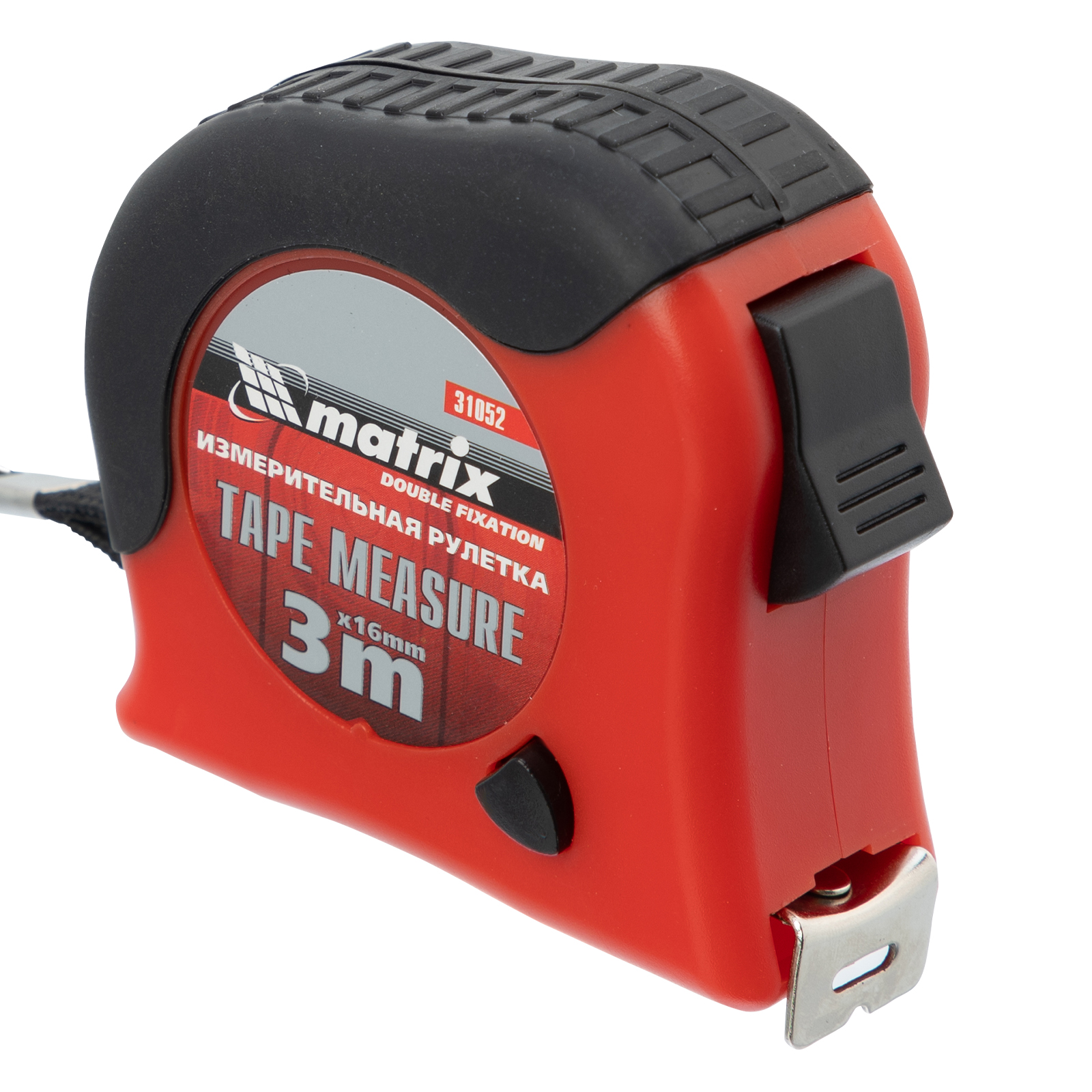 Шт рулетка double fixation,3 м х 16 мм,обрезиненный корпус,двойная плавная фиксация matrix. Бренд: Matrix Измерительная шкала: метрическая Материал корпуса: двухкомпонентный Материал ленты: сталь Особенности: обрезиненный корпус Страна производства: Китай Тип упаковки: подвесная карта Длина в упаковке, мм: 110 Ширина в упаковке, мм: 80 Вес (брутто), кг: 0.13 Рулетка: 1 шт Рулетка Matrix Double fixation 31052 в обрезиненном корпусе, с двойной плавной фиксацией ленты длиной 3 м и шириной 16 мм, предназначена для определения расстояния между двумя точками. Двухкомпонентный корпус из ударопрочного ABS-пластика и ПВХ устойчив к механическим повреждениям. Инструмент используется для выполнения строительных и ремонтных работ, а также полезен в быту. Преимущества Удобная фиксация ленты — производитель предусмотрел стопор и боковую кнопку-паузу, облегчающую проведение частых измерений. Надежность — зацеп зафиксирован заклепками на конце измерительной ленты. Комфортное использование — нейлоновый ремешок позволяет носить рулетку на запястье, при помощи металлической скобы можно закрепить рулетку на поясе.  развернуть описание ▼
