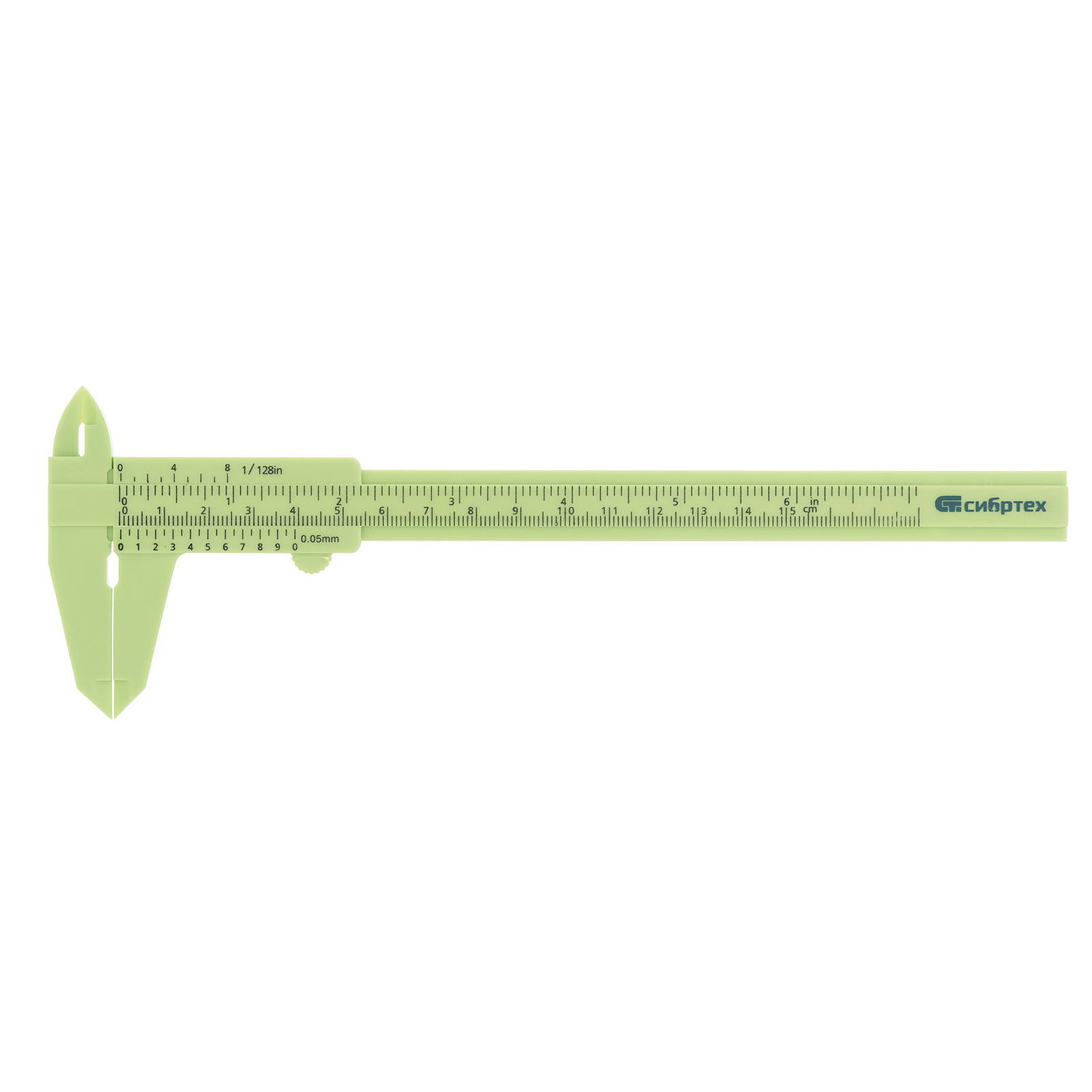 Шт штангенциркуль пластиковый, 150 мм сибртех. Бренд: Сибртех Особенности: пластиковый Страна бренда: Россия Страна производства: Китай Длина, мм: 150 Размер шага, мм: 0.05 Тип упаковки: слайд-карта Длина в упаковке, мм: 285 Высота в упаковке, мм: 6.5 Вес (брутто), кг: 0.045 Штангенциркуль: 1 шт Пластиковый штангенциркуль Сибртех 31621 предназначен для определения внутренних и наружных размеров деталей в пределах 0-150 мм. Двустороннее расположение губок упрощает проведение работ. Цена деления нониуса составляет 0,05 мм, погрешность — ±0,25 мм, что делает инструмент оптимальным для бытового использования. Преимущества Долговечность — штангенциркуль из пластика (полистирола) устойчив к воздействию влаги и не деформируется со временем. Удобное выполнение измерений — на инструмент нанесена миллиметровая и дюймовая шкала. Дополнительные возможности — при помощи глубиномера можно измерять глубину отверстий и канавок.  развернуть описание ▼