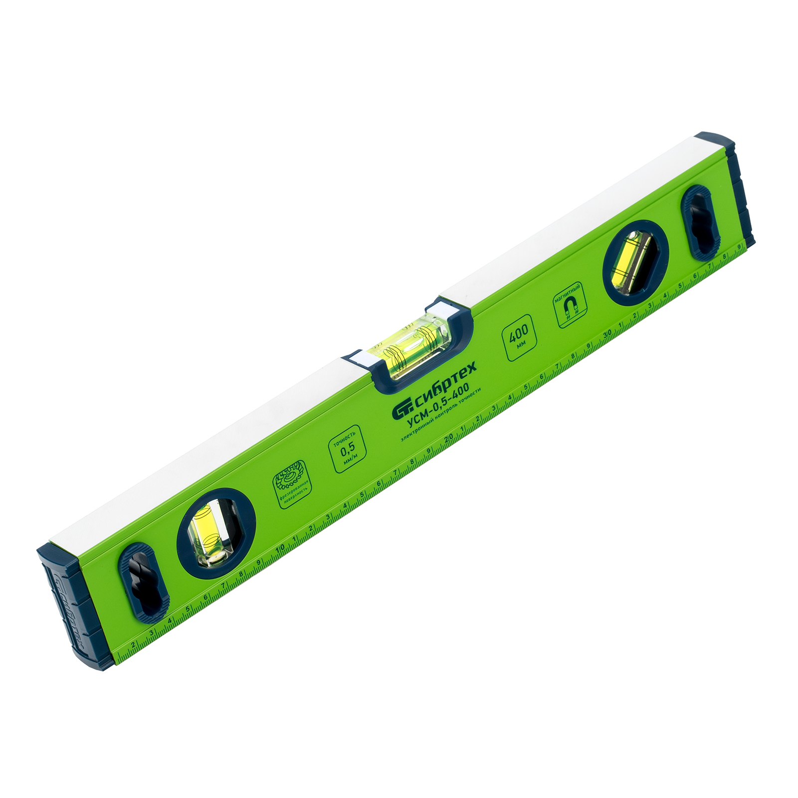 Шт уровень алюминиевый усм-0,5-400, фрезерованный, 3 глазка, магнитный, 400 мм сибртех. Бренд: Сибртех Материал корпуса: алюминий Особенности: магнитные свойства, резиновые заглушки Погрешность: ±0,5 ммu002Fм Страна производства: Китай Тип упаковки: термоусадочная пленка Вес (брутто), кг: 0.29 Уровень: 1 шт Алюминиевый фрезерованный уровень Сибртех УСМ-0,5-400 34113 длиной 400 мм, магнитный, с 3 глазками, поможет найти отклонения от горизонтальной и вертикальной плоскостей и угла 45 градусов. Инструмент незаменим при осуществлении строительных и ремонтных работ, т.к. обеспечивает высокую точность работы.;Для определения отклонения вертикали 90 градусов необходимо использовать пузырьковую ампулу только в верхнем положении уровня. Только базовая поверхность является рабочей (противоположная ампуле 180 градусов). Преимущества Алюминиевый профиль — инструмент отличается прочностью и малым весом 293 г. Надежность — контроль установки глазков уровня осуществлен электроникой. Высокая точность — рабочая поверхность инструмента фрезерована, погрешность не превышает 0,5 мм/м. Удобство работы — уровень имеет измерительную шкалу на корпусе. Встроенные магниты — прибор можно зафиксировать на металлических поверхностях и освободить руки. Защита от попадания мусора — с обеих сторон на корпусе имеются заглушки.  развернуть описание ▼