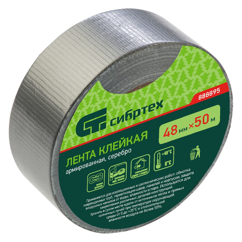 2шт лента клейкая армированная, 48 мм х 50 м, серебро сибртех