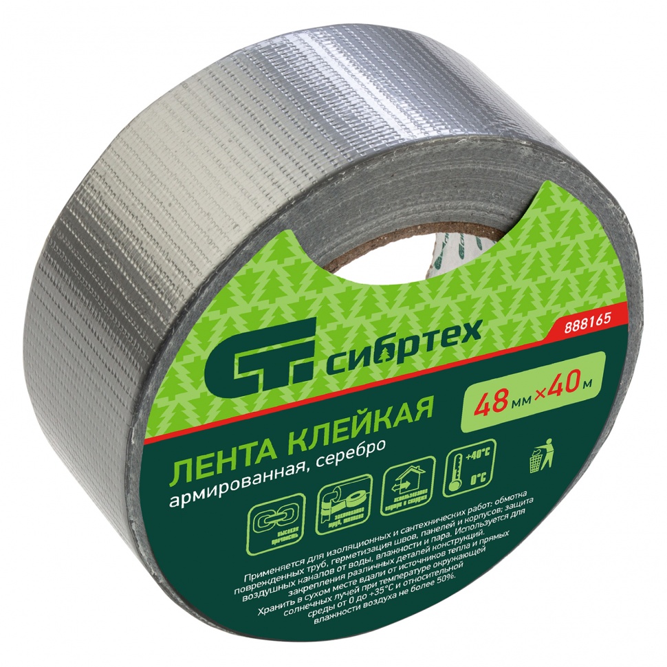 2шт лента клейкая армированная, 48 мм х 40 м, серебро сибртех