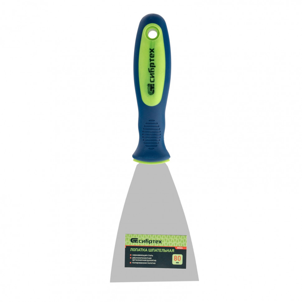 Шпательная лопатка из нержавеющей стали, 80 мм, двухкомпонентная ручка сибртех. Бренд: Сибртех Материал полотна: нержавеющая сталь Материал рукоятки: двухкомпонентная Ширина полотна: 80 мм Страна производства: Китай Тип упаковки: без упаковки Длина в упаковке, мм: 243 Ширина в упаковке, мм: 80 Вес (брутто), кг: 0.11 Шпательная лопатка: 1 шт Шпательная лопатка из нержавеющей стали Сибртех 85524 шириной 80 мм, с двухкомпонентной рукояткой, облегчает проведение ремонтно-отделочных работ. Позволяет наносить и разравнивать строительные смеси, шпаклевать швы, заполнять трещины, удалять старые обои и выполнять работы в труднодоступных местах. Преимущества Долговечность и защита от коррозии — рабочая часть изготовлена из профилированной нержавеющей стали. Эффективная работа — за счет зеркальной полировки с полотна легко удаляются остатки смеси. Гибкость и прочность — рабочее полотно прошло термическую обработку для повышения эксплуатационных качеств. Ширина 8 см — небольшая лопатка оптимально подходит для исправления мелких неровностей и трещин в труднодоступных местах. Эргономичность — рукоятка анатомической формы имеет нескользящее покрытие для удобного захвата и комфортной работы. Долговечность — рабочее полотно прочно соединено с рукояткой. Удобное подвесное хранение — в рукоятке предусмотрено отверстие.  развернуть описание ▼