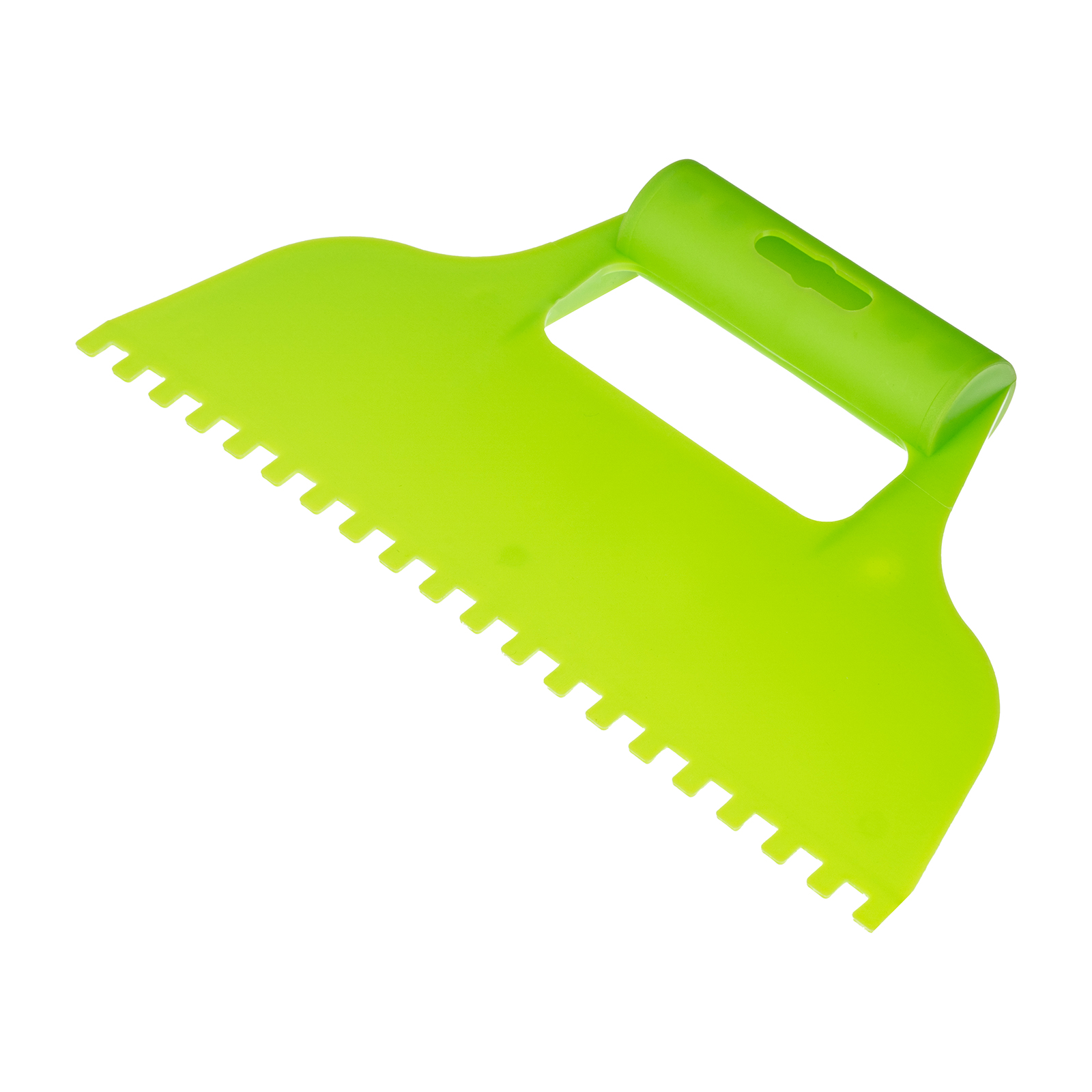 Пластмассовый шпатель для клея Сибртех 86015, зубчатый (квадратные зубья 6 х 6 мм), рассчитан на нанесение клеевых составов и их последующее выравнивание. Зубчатая рабочая часть позволяет равномерно наносить смесь для надежного соединения с плиткой и расходовать ее экономно.