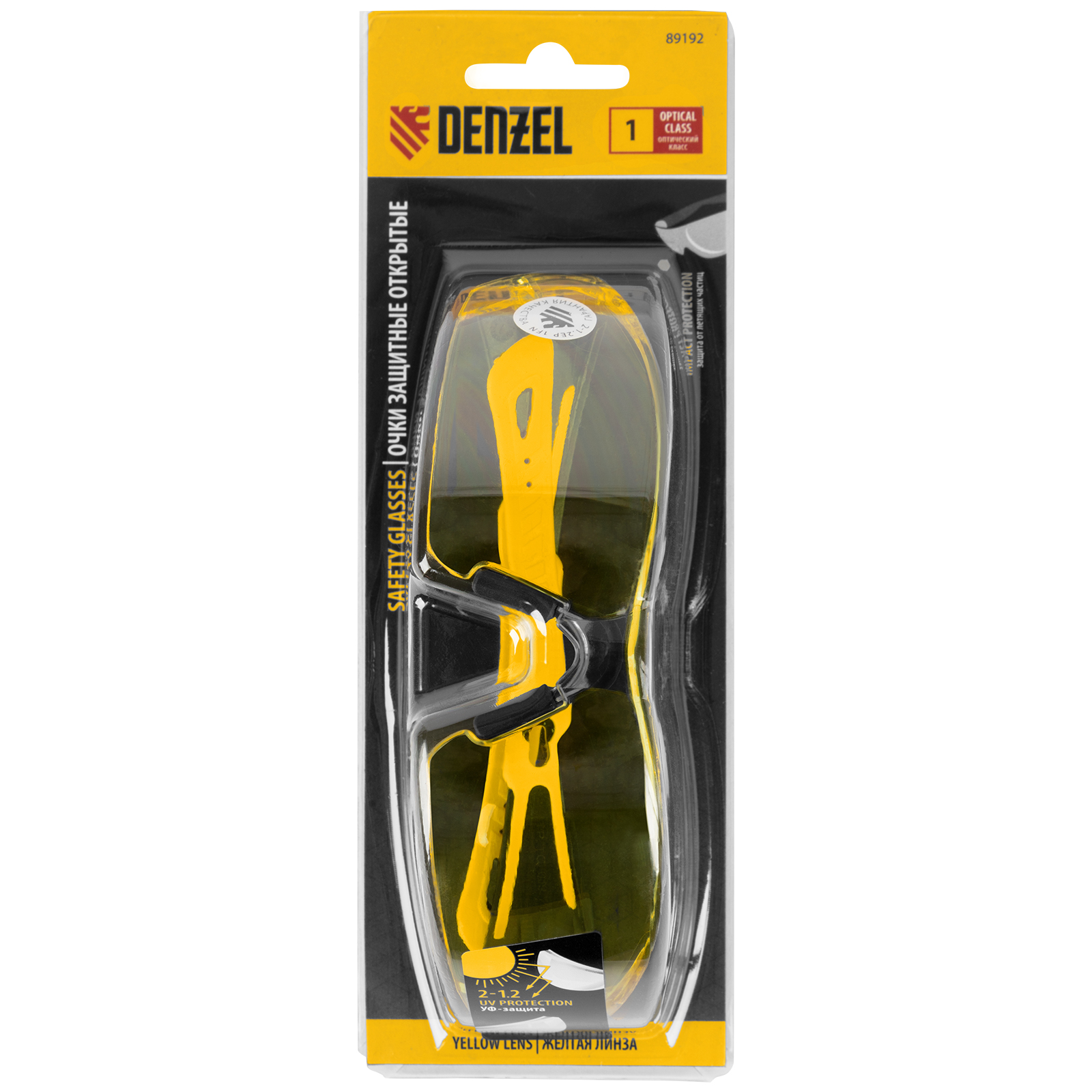 2шт очки защитные открытые, поликарбонатные, желтая линза, 2х комп.дужки denzel. Бренд: DENZEL Материал линзы: поликарбонат Цвет линзы: желтый Страна бренда: Германия Страна производства: Россия Длина в упаковке, мм: 200 Вес (брутто), кг: 0.05 Комплектация товара: 1 шт Легкие универсальные защитные очки открытого типа Denzel 89192 с поликарбонатными желтыми линзами и 2-компонентными дужками предназначены для защиты глаз от механических повреждений и УФ-излучения. Очкам присвоен класс механической прочности F, они обеспечивают защиту от высокоскоростных частиц с низкоэнергетическим ударом V=45 м/с. Очки используются во время работы с электро- и бензоинструментом, на производстве и в быту. Преимущества Отличная видимость – на линзы нанесено двустороннее твердое незапотевающее покрытие в соответствии с ГОСТ 12.4.309.2-2016. Высокие эксплуатационные свойства — линзы из высокопрочного поликарбоната имеют оптический класс 1 и подходят для длительного ношения. Желтые линзы — очки обеспечивают хорошую контрастность предметов в условиях тумана, дымки или слабого освещения. Оптимальная посадка — мягкий носовой упор и гибкие дужки из современных материалов не давят и не натирают кожу. Комфортная работа — в дужках предусмотрены отверстия под шнурок. Высокое качество — характеристики очков соответствуют требованиями ТР ТС 019/2011, что подтверждает соответствующий сертификат.  развернуть описание ▼