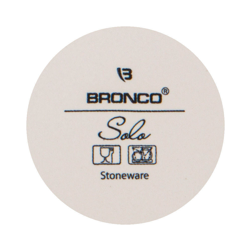 ТМ BRONCO предлагает высокотемпературную керамическую посуду из натуральных материалов SOLO. Модная коллекция цвета с тонкой золотой обводкой. Современные формы с высоким бортиком, удобные размеры. Все изделия покрыты блестящей глазурью, нежные и выразительные, легко сделают сервировку стола стильной и ультрамодной. Посуда хороша как для ежедневного использования, так и для торжественных случаев. Прошла сертификацию. Безопасна для контакта с пищевыми продуктами. Не рекомендуется использовать в микроволновой печи, можно мыть в посудомоечной машине с применением мягких неабразивных средств.