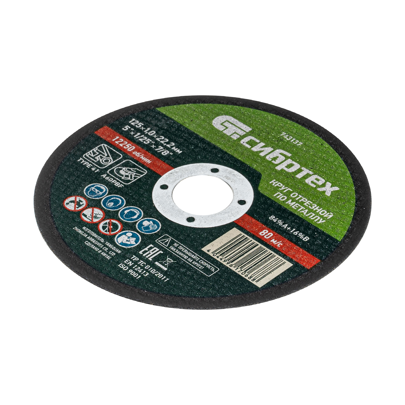 Круг отрезной по металлу, 125 х 1.0 х 22.2 мм, 84%a+16%b сибртех. Бренд: Сибртех Зернистость: F60 Материал абразива: оксид алюминия Назначение: по металлу Посадка: 22,20 мм Связка: бакелитовая с армированием Стеклосетка: усиленная Твердость связки: S - твердая Форма: круг Страна бренда: Россия Страна производства: Китай Тип упаковки: без упаковки Вес (брутто), кг: 0.03 Круг отрезной: 1 шт Отрезной круг по металлу Сибртех 84%A+16%B 743137 размером 125 х 1,0 мм устанавливается на УШМ с посадочным размером 22,2 мм. Предназначен для сухой резки углеродистых сталей. Круг пригодится частному мастеру для проведения ремонтных работ дома или в гараже. Преимущества 2-слойная усиленная сетка повышает стойкость круга к разрыву, обеспечивая безопасность работы. Среднетвердая бакелитовая связка с упрочняющими элементами увеличивает ресурс оснастки. Круг толщиной 1 мм легко и аккуратно режет сталь, позволяя получить ровную кромку без дефектов.  развернуть описание ▼