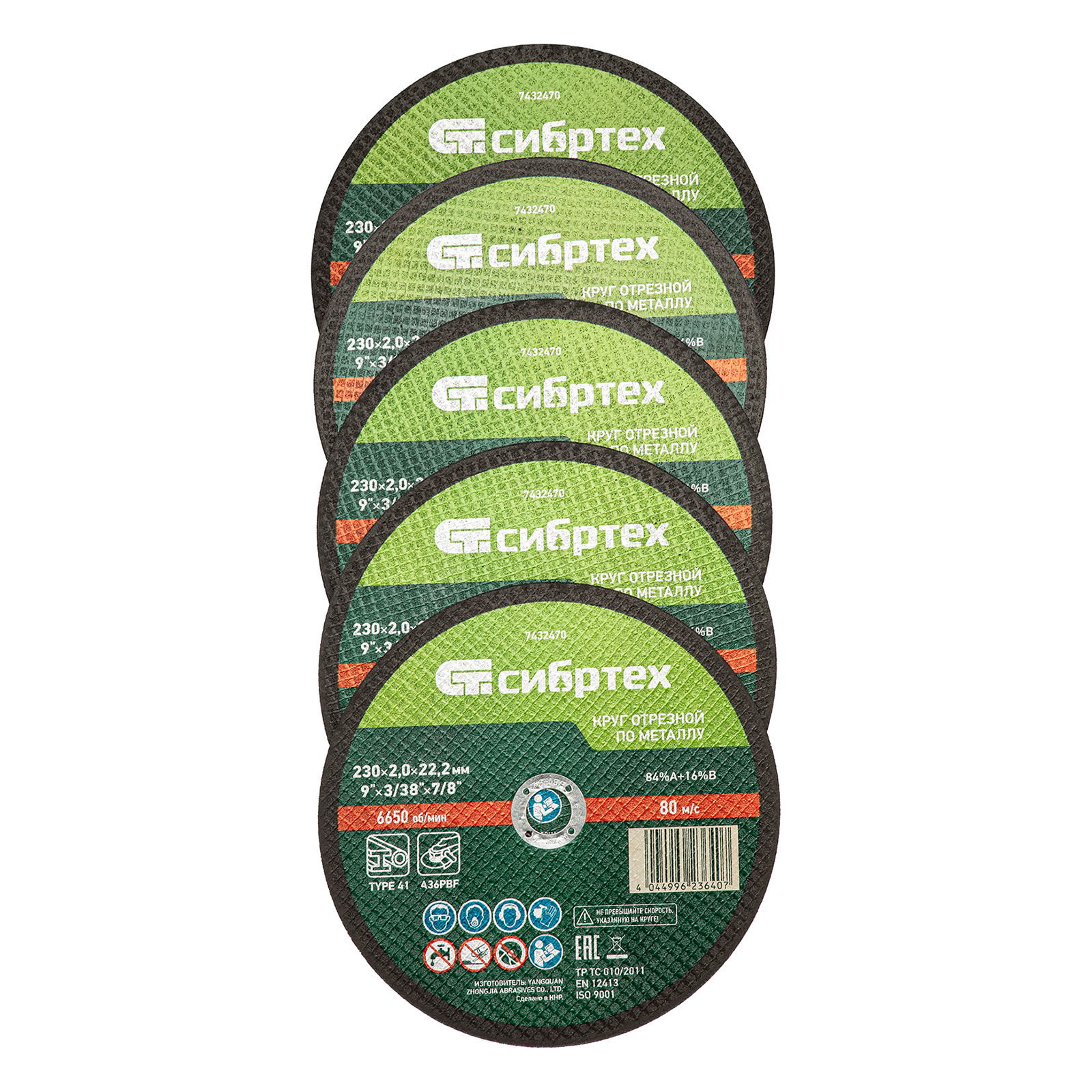 Шт круг отрезной по металлу, 230 х 2,0 х 22,2 мм, 84%a+16%b, в метал.банке, 5 шт. сибртех. Бренд: Сибртех Материал абразива: нормальный электрокорунд, специальные добавки Посадка: 22,20 мм Связка: бакелитовая с армированием Стеклосетка: усиленная Твердость связки: P - среднетвердые Форма: круг Страна бренда: Россия Страна производства: Китай Диаметр, мм: 230 Вес (брутто), кг: 1.12 Круг отрезной в металлической банке: 5 шт Круг отрезной по металлу Сибртех 84%A+16%B 7432470 диаметром 230 мм и толщиной 2,0 мм, 5 шт. в металлической банке, устанавливается на УШМ с посадочным размером 22,2 мм. Предназначен для сухой резки углеродистых сталей. Набор пригодится частному мастеру для проведения ремонтных работ дома или в гараже, также подойдет для профессионального применения. Преимущества Безопасная эксплуатация — двухслойная усиленная сетка повышает устойчивость кругов к разрыву. Увеличенный ресурс — круги изготовлены из электрокорунда нормального и бакелитовой связки средней твердости со специальными добавками. Толщина 2 мм — круг имеет оптимальный баланс прочности и скорости реза. Выгодное приобретение — стоимость набора сопоставима с популярными аналогами российского производства. Надежная упаковка и оптимальный запас — в набор входит 5 отрезных кругов, упакованных в металлическую банку.  развернуть описание ▼