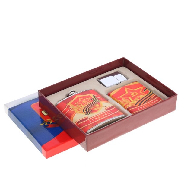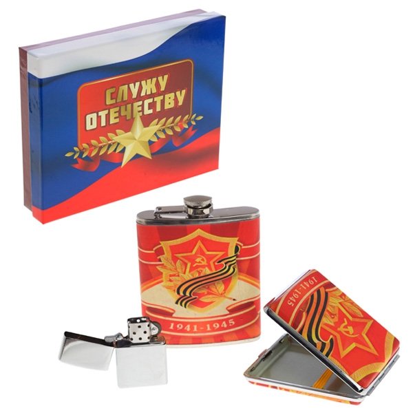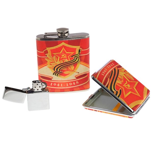Набор: фляжка, портсигар, зажигалка, L 20 W 17 H 4 см