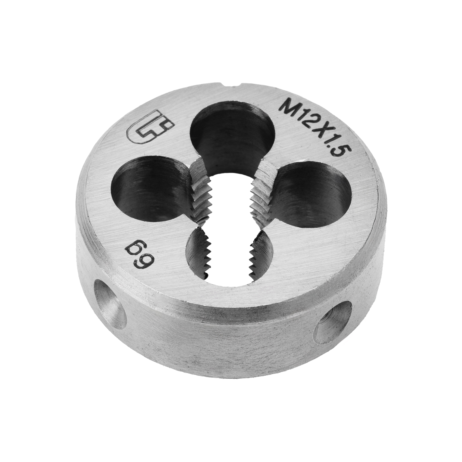 Плашка м12 х 1.5 мм сибртех. Бренд: Сибртех Гарантия: нет Класс точности: 6H Марка стали: 9ХС Направление резьбы: правая Страна производства: Китай Шаг резьбы М, мм: 1.5 Тип упаковки: сэндвич-блистер Вес (брутто), кг: 0.08 Плашка: 1 шт Плашка Сибртех 77031 типоразмера М12 х 1,5 мм предназначена для нарезания внешней метрической резьбы. Проста в использовании, поэтому пригодится даже начинающему мастеру для проведения слесарных и монтажных работ в быту. Цельная конструкция плашки позволяет полностью захватить деталь и нарезать высокоточную резьбу за один проход. Преимущества Надежность и долговечность — плашка изготовлена из инструментальной стали 9XC, режущие кромки закалены до твердости 60 HRC в соответствии с ГОСТом. Эффективная работа — плашка имеет 4 рабочие зоны, ей присвоен класс точности 6H, что соответствует европейским стандартам качества. Высокая скорость нарезки — глубокие зоны обеспечивают эффективный отвод стружки. Быстрый поиск нужной плашки — на корпусе имеется крупная маркировка с обозначением размера.  развернуть описание ▼