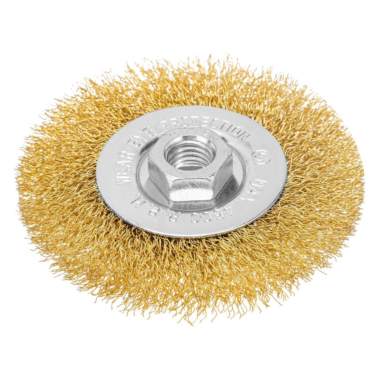 2шт щетка для ушм, 100 мм, м14, плоская, латунированная витая проволока Matrix