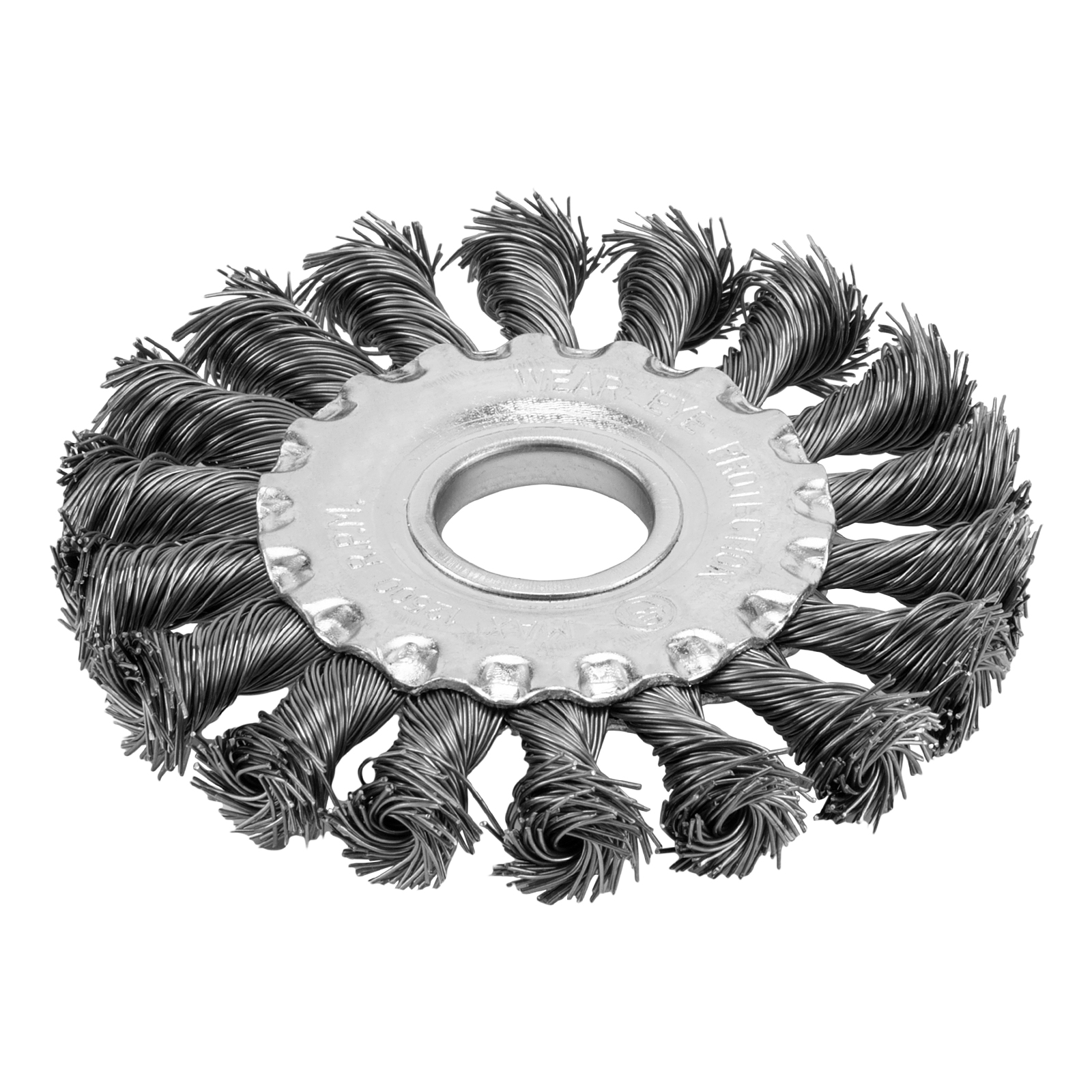 Шт щетка для ушм, 100 мм, посадка 22.2 мм, плоская, крученая проволока 0.5 мм сибртех. Бренд: Сибртех Диаметр проволоки: 0,50 мм Защитное покрытие корпуса: цинк Защитное покрытие проволоки: масло Материал корпуса: сталь Q235-C Материал проволоки: сталь 50CRVA Посадка: 22,20 мм Тип проволоки: крученая Форма: плоская Страна бренда: Россия Страна производства: Китай Тип упаковки: картонная коробка Вес (брутто), кг: 0.23 Щетка: 1 шт Плоская щетка Сибртех 746307 диаметром 100 мм и посадкой 22,2 мм, с щетиной из крученой проволоки толщиной 0,5 мм, устанавливается на вал УШМ, поддерживающей скорость вращения не более 12500 об/мин. Эффективно удаляет загрязнения, толстый слой ржавчины и лакокрасочных материалов с поверхностей, поэтому используется для проведения грубой (черновой) обработки. Плоской щеткой удобно очищать труднодоступные места, в том числе углы и изгибы. Преимущества Долговечность — щетина из высококачественной стальной проволоки устойчива к износу. Универсальность — щетка подходит для обработки любых твердых поверхностей: из металла, древесины, цветных металлов, пластика и т. д. Стойкость к разрушению — корпус оцинкован, а щетина покрыта техническим маслом для защиты от коррозии.  развернуть описание ▼