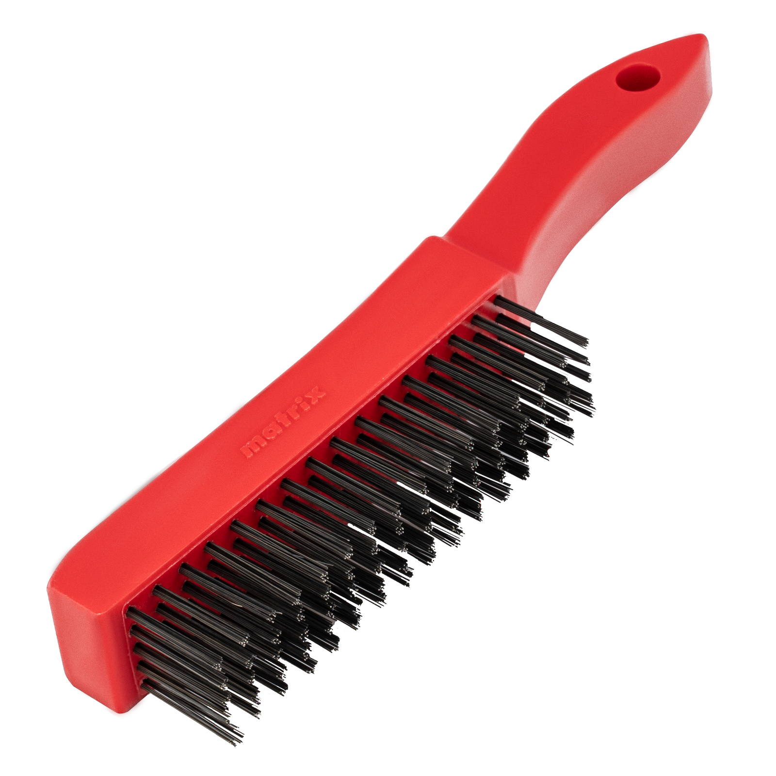 Шт щетка зачистная пятирядная, закаленная прямая проволока с пластиковой ручкой matrix. Бренд: Matrix Материал: пластмасса, сталь Страна производства: Китай Длина рабочей части, мм: 120 Тип упаковки: без упаковки Вес (брутто), кг: 0.2 Щетка: 1 шт Зачистная пятирядная щетка Matrix 74815 с пластиковой ручкой и щетиной из закаленной прямой проволоки используется для удаления загрязнений, ржавчины, остатков лакокрасочных покрытий с металлических, деревянных, бетонных поверхностей. Пучки расположены в 5 рядов, в каждом пучке 20 щетинок, поэтому щетка выдерживает повышенные нагрузки. Щетка пригодится во время проведения строительных и ремонтных работ, а также будет полезна дома или в гараже. Преимущества Прочность и износостойкость — щетина выполнена из закаленной высокоуглеродистой стали. Долговечность — масляная пленка защищает проволоку от коррозии, рукоятка из прочного пластика не подвержена рассыханию. Надежная фиксация пучков ворса в основании — проволока не выпадает во время работы. Комфортная работа — изогнутая рукоятка удобно ложится в руку. Удобное хранение — в рукоятке имеется отверстие для подвешивания щетки.  развернуть описание ▼