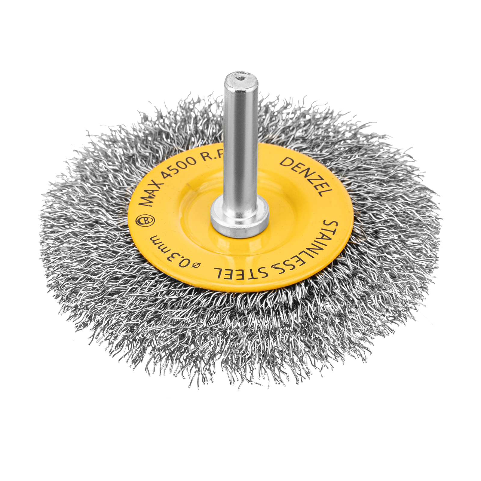 Щетка для дрели, 75 мм, плоская, со шпилькой, нержавеющая витая проволока Denzel