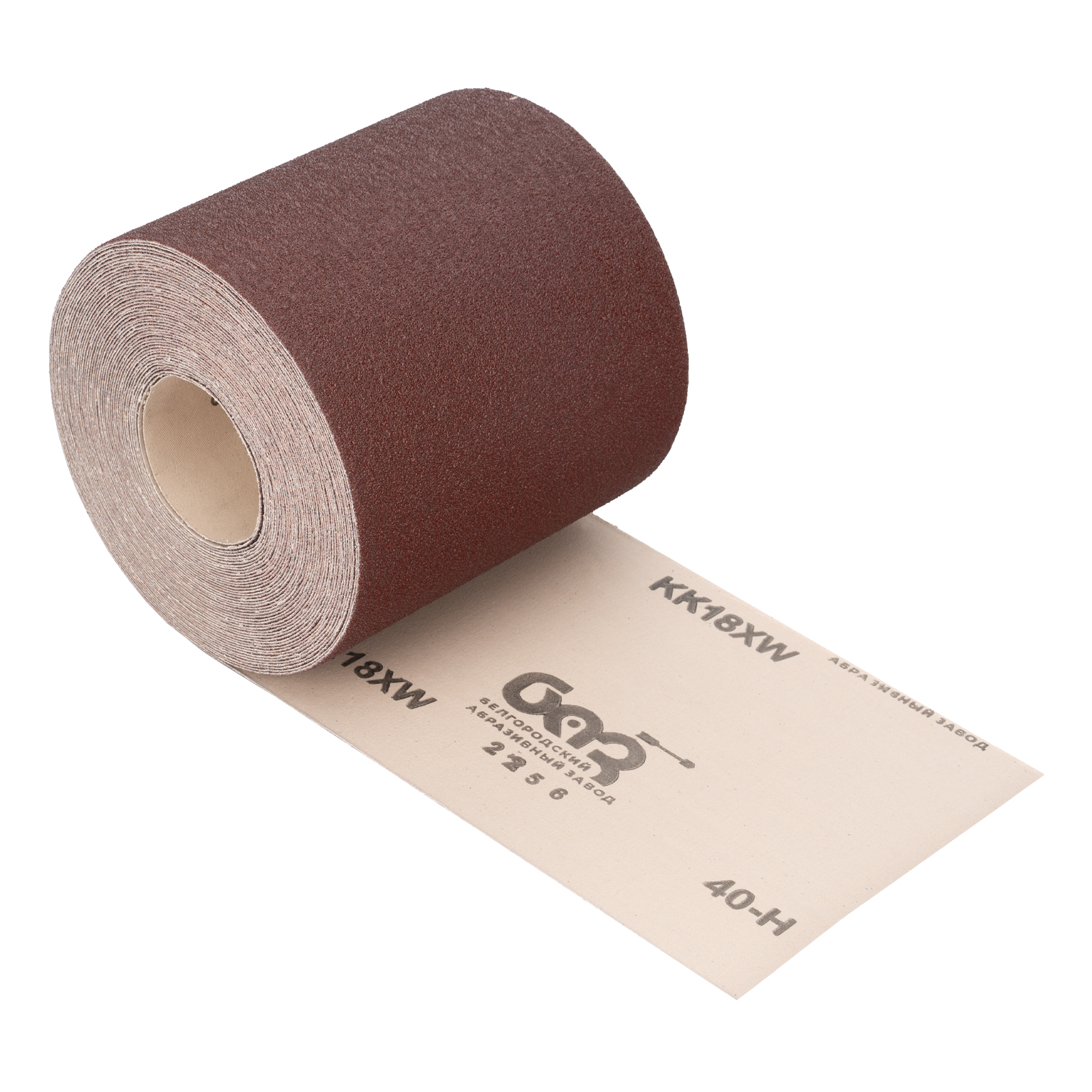 Водостойкая шкурка на тканевой основе БАЗ 75253 серии KK18XW, с зернистостью 40H (P 40) и размером 200 мм x 20 м, поставляется на бобине и применяется для выполнения грубых работ по дереву и металлу. Крупнозернистый абразив P 40 с размером частиц 400-500 мкм оптимален для первичного выравнивания, удаления сучков и заусенцев, снятия ржавчины, подготовки материалов к последующей обработке.