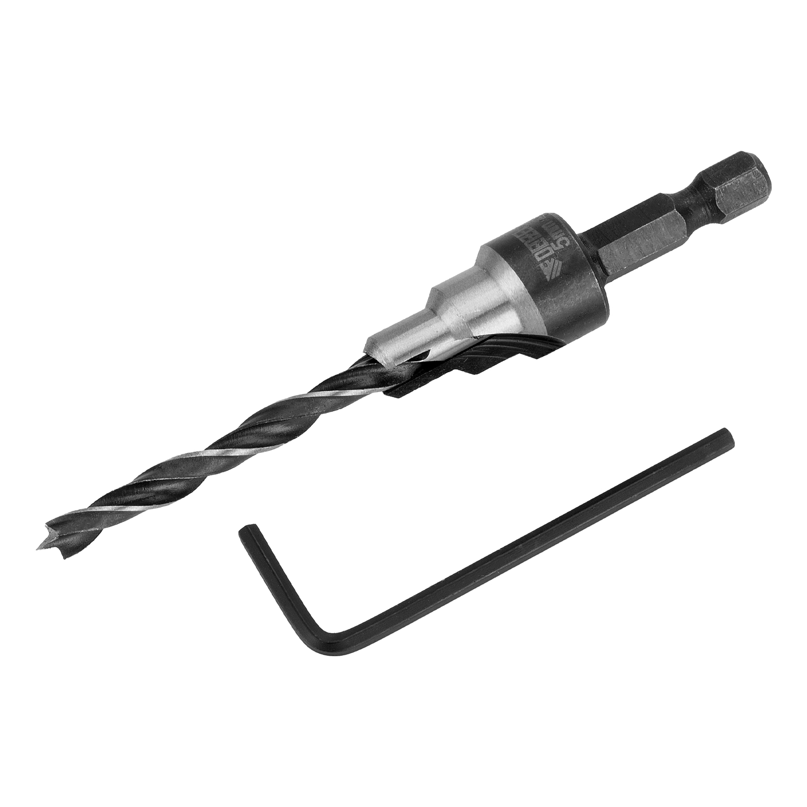 Сверло-зенкер под конфирмат, 5 мм // denzel. Бренд: DENZEL Марка стали: инструментальная сталь Материал обработки: древесина Тип хвостовика: шестигранный Страна производства: Китай Длина в упаковке, мм: 175 Ширина в упаковке, мм: 50 Вес (брутто), кг: 0.042 Сверло-зенкер под конфирмат: 1 шт Сверло-зенкер Denzel 704205 диаметром 5 мм предназначено для получения точных и ровных отверстий под мебельную стяжку (евровинты, конфирмат) без дополнительного зенкования. Устанавливается в патрон дрели или сверлильного станка, подходит для работы с изделиями из древесины, ДСП, ЛДСП, фанеры. Оснастка пригодится во время сборки мебели и проведения ремонтных работ. Преимущества Прочность — сверло изготовлено из высококачественной инструментальной стали. Высокий ресурс — оснастка твердостью 48 HRC долго сохраняет рабочие свойства. Защита от разрушения — оксидированное покрытие предотвращает образование коррозии. Получение разных отверстий без замены оснастки — глубина сверления регулируется в диапазоне 50-70 мм. Быстрый поиск нужного сверла — на корпус нанесена четкая маркировка с обозначением диаметра. Полная комплектация — оснастка поставляется с имбусовым ключом для фиксации сверла. Универсальность — цилиндрический хвостовик совместим со стандартными патронами дрелей.  развернуть описание ▼