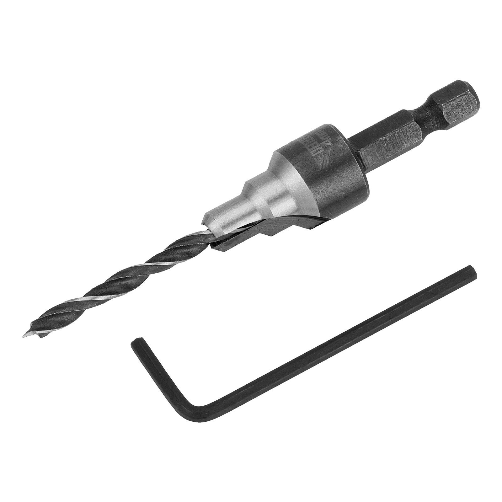 Шт сверло-зенкер под конфирмат, 4 мм // denzel. Бренд: DENZEL Марка стали: инструментальная сталь Материал обработки: древесина Тип хвостовика: шестигранный Страна производства: Китай Длина в упаковке, мм: 175 Ширина в упаковке, мм: 50 Вес (брутто), кг: 0.04 Сверло-зенкер под конфирмат: 1 шт Сверло-зенкер Denzel 704204 диаметром 4 мм предназначено для получения точных и ровных отверстий под мебельную стяжку (евровинты, конфирмат) без дополнительного зенкования. Устанавливается в патрон дрели или сверлильного станка, подходит для работы с изделиями из древесины, ДСП, ЛДСП, фанеры. Оснастка пригодится во время сборки мебели и проведения ремонтных работ. Преимущества Прочность — сверло изготовлено из высококачественной инструментальной стали. Высокий ресурс — оснастка твердостью 48 HRC долго сохраняет рабочие свойства. Защита от разрушения — оксидированное покрытие предотвращает образование коррозии. Получение разных отверстий без замены оснастки — глубина сверления регулируется в диапазоне 40-60 мм. Быстрый поиск нужного сверла — на корпус нанесена четкая маркировка с обозначением диаметра. Полная комплектация — оснастка поставляется с имбусовым ключом для фиксации сверла. Универсальность — цилиндрический хвостовик совместим со стандартными патронами дрелей.  развернуть описание ▼