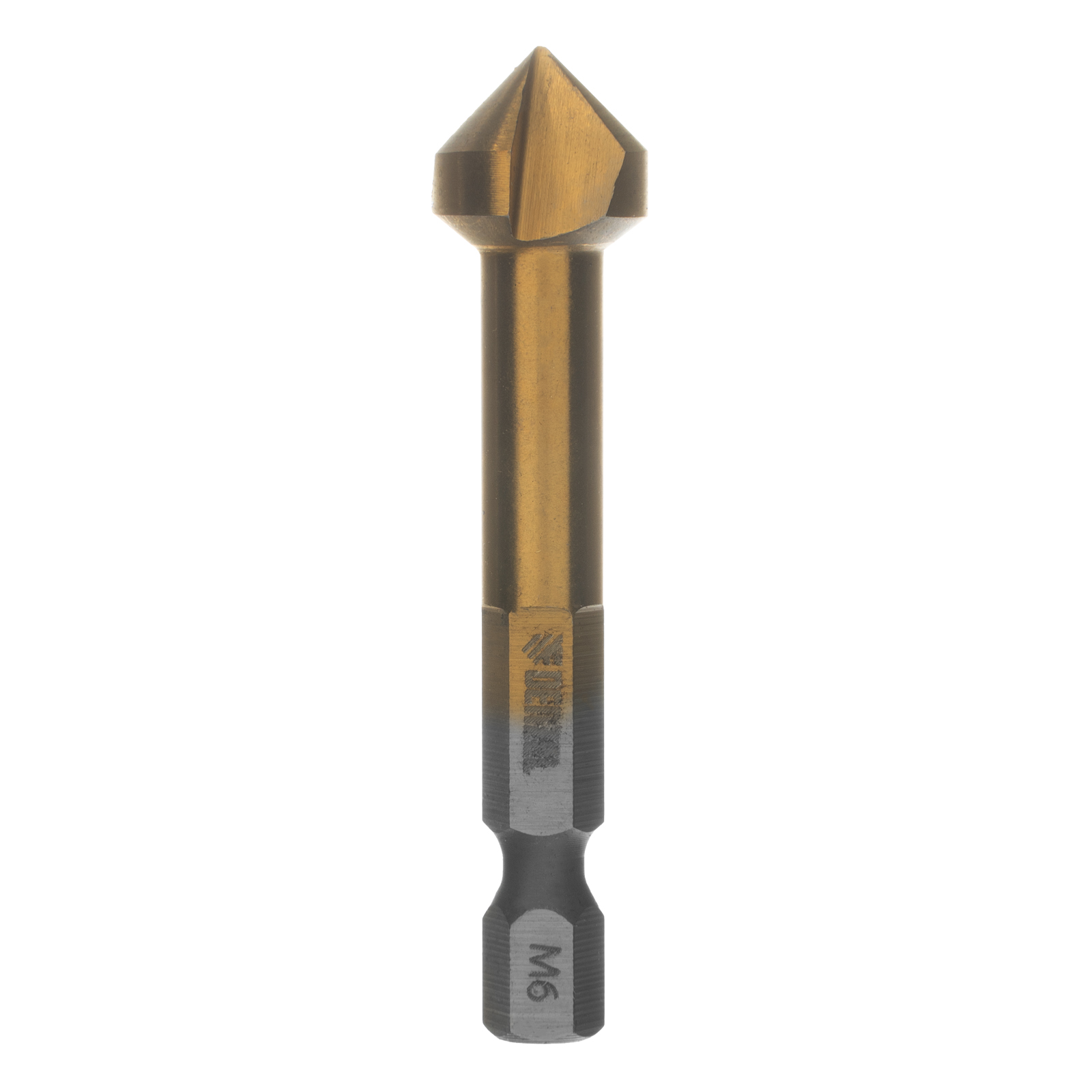 2шт зенковка конусная под м6, hss, по металлу, 6-гранный хвостовик denzel. Бренд: DENZEL Марка стали: HSS Материал обработки: пластик, сталь Тип хвостовика: шестигранный Страна производства: Китай Длина в упаковке, мм: 178 Вес (брутто), кг: 0.021 Зенковка конусная: 1 шт Конусная зенковка Denzel 72307 под болт M6, с 6-гранным хвостовиком, применяется для выполнения конических отверстий и снятия фасок в стали, цветных металлах, древесине и пластике. Устанавливается в патрон дрели или сверлильного станка. Три режущие кромки и идеальные углы заточки 90° обеспечивают точную и быструю обработку отверстий. Оснастка используется во время выполнения слесарных работ. Преимущества Эффективная работа — монолитная конструкция выполнена из быстрорежущей стали HSS. Износостойкость — рабочая часть твердостью 58-63 HRC долго сохраняет режущие свойства. Долговечность — нитридтитановое покрытие уменьшает трение и защищает оснастку от коррозии. Надежная фиксация — шестигранный хвостовик не проворачивается в патроне электроинструмента.  развернуть описание ▼