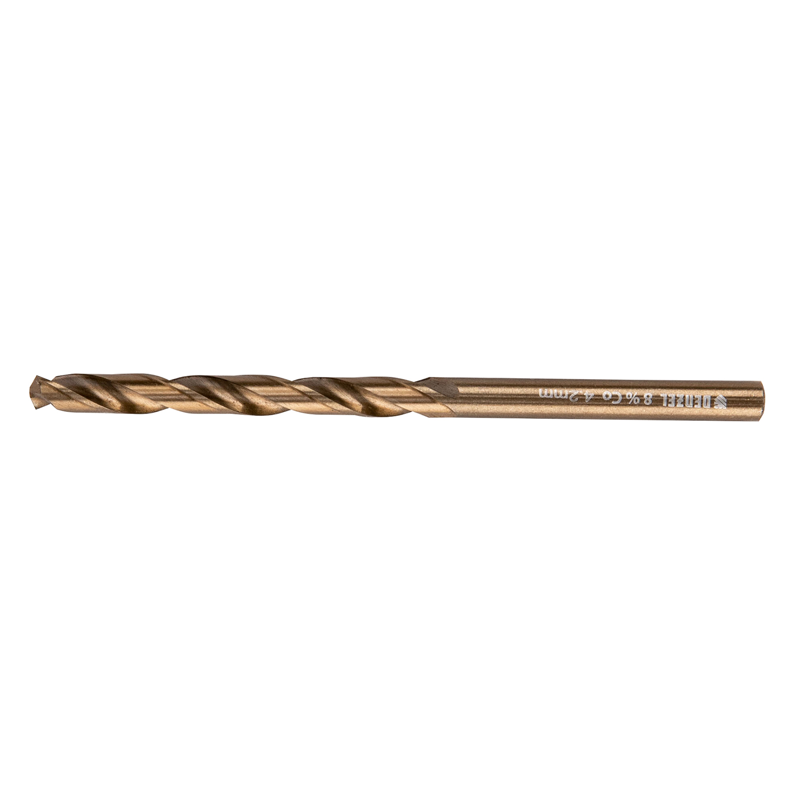 Сверло по металлу, 4,2 мм, hss co-8%// denzel. Бренд: DENZEL Класс точности: A Марка стали: Р6М5К8 Материал обработки: металл Тип обработки поверхности: вышлифованное Тип хвостовика: цилиндрический Страна производства: Китай Тип упаковки: сэндвич Длина в упаковке, мм: 225 Ширина в упаковке, мм: 50 Вес (брутто), кг: 0.021 Сверло по металлу: 1 шт Кобальтовое сверло по металлу Denzel 71431 диаметром 4,2 мм, из стали HSS Co-8%, позволяет получать отверстия высокой точности в нержавеющей стали, цветных металлах, легированных и нелегированных сталях с пределом прочности до 1100 Н/мм2, а также в жестком пластике. Угол заточки 135° обеспечивает повышенную точность и чистоту сверления. Преимущества Повышенная стойкость к износу и перегреву — сверло изготовлено из наиболее качественной быстрорежущей стали М42 с 8%-ным содержанием кобальта. Точная и быстрая работа — шлифованный профиль обеспечивает эффективный отвод металлической стружки и позволяет добиться гладкого отверстия. Легкое засверливание — подточка поперечной кромки Split point повышает устойчивость сверла к нагрузкам и позволяет приступать к работе без предварительной разметки поверхности (накернивания). Универсальность — цилиндрический хвостовик совместим со всеми типами патронов.  развернуть описание ▼