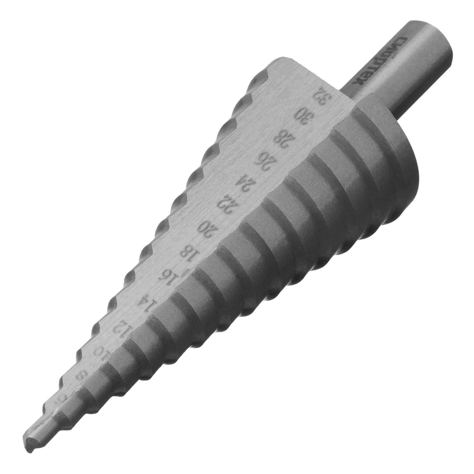 Сверло ступенчатое по металлу, 4-6-8-10-12-14-16-18-20-22-24-26-28-30-32 мм, 4241 сибртех. Бренд: Сибртех Класс точности: B Материал обработки: металл, пластик Тип хвостовика: трехгранный Страна производства: Китай Диаметр хвостовика, мм: 11.1 Тип упаковки: блистер Длина в упаковке, мм: 175 Ширина в упаковке, мм: 88 Вес (брутто), кг: 0.175 Сверло ступенчатое: 1 шт Ступенчатое сверло Сибртех 723015 предназначено для сверления отверстий диаметром от 4 до 32 мм в сталях, цветных металлах и пластике. Избавляет от необходимости иметь при себе целый набор традиционных сверл. Позволяет получать отверстия с ровными краями и уже снятой фаской под гайку или болт. Сверло пригодится дома и в мастерской. Преимущества Эффективность — оснастка из прочной быстрорежущей стали устойчива к интенсивным динамическим нагрузкам. Высокий ресурс — рабочие части твердостью 60-62 HRC долго сохраняют режущие свойства. Защита от разрушения — сверло покрыто техническим маслом для предотвращения образования коррозии. Надежная фиксация — трехгранный хвостовик не проворачивается в патроне дрели. Удобная упаковка — сверло поставляется в блистере, позволяющем осмотреть его перед покупкой.  развернуть описание ▼