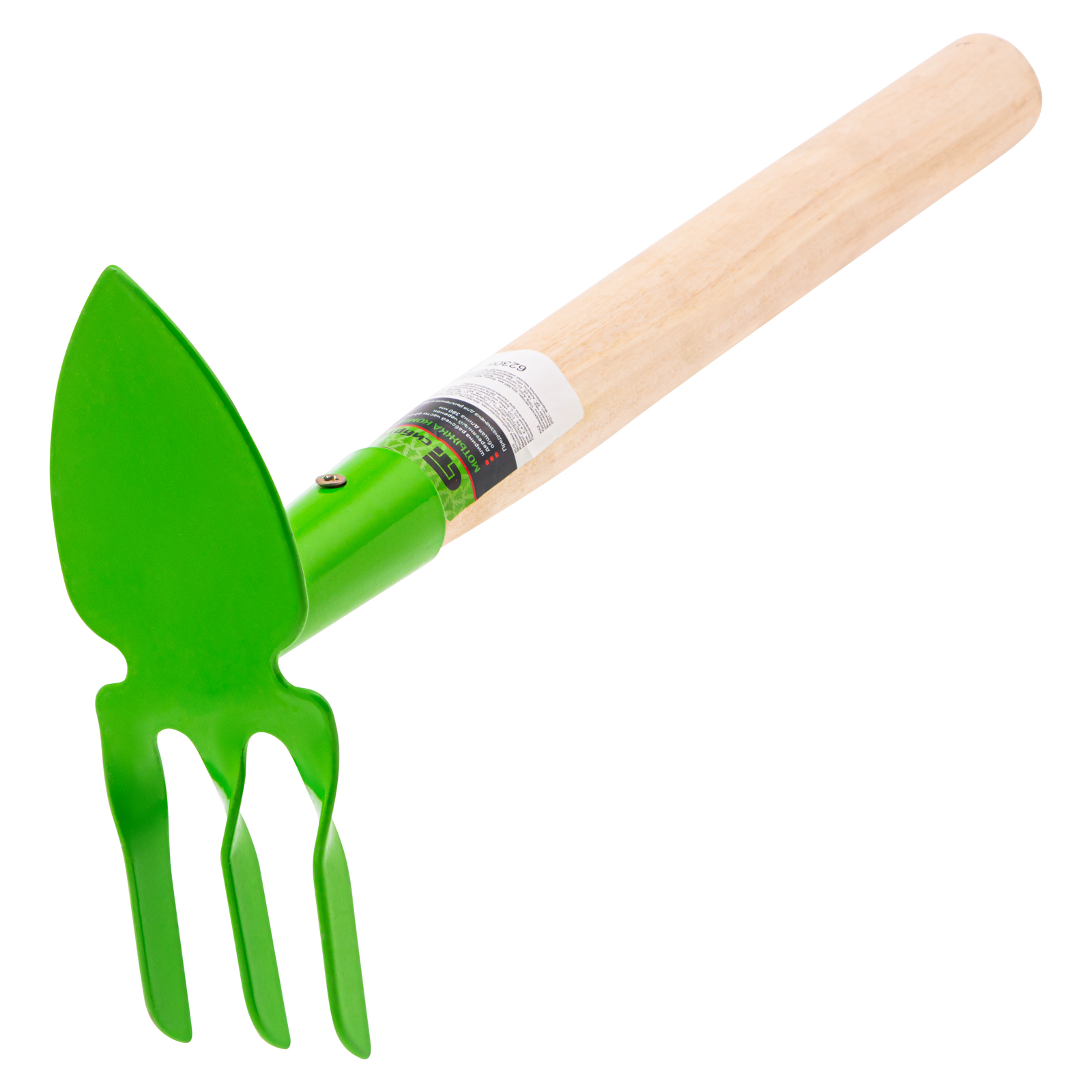 Шт мотыжка комбинированная, 60 х 380 мм, стальная, деревянная рукоятка, агроном, сибртех. Бренд: Сибртех Материал рукояткиu002Fчеренка: древесина Покрытие рабочей части: эмаль порошковая Рукоятка: однокомпонентная Серия: Агроном Тип крепления для рукояткиu002Fчеренка: саморез Цвет рабочей части: зеленый Вес (брутто), кг: 0.35 Мотыжка: 1 шт Комбинированная стальная мотыжка Сибртех АГРОНОМ 62306 длиной 380 мм, с деревянной рукояткой, имеет рабочую часть шириной 60 мм и используется для обработки почвы на небольших участках. Рабочая часть представляет собой сочетание лепестка и трезубца. Лепестковая часть рыхлит землю, формирует бороздки и лунки под посадку растений. Витые зубья разбивают земляные комочки, обеспечивая эффективную аэрацию почвы. Инструмент идеально подходит для ухода за клумбами и грядками. Преимущества Долговечность — рабочая часть из конструкционной углеродистой стали устойчива к износу. Защита от разрушения — покрытие из порошковой эмали предохраняет инструмент от коррозии и механических повреждений. Надежность — черенок зафиксирован саморезом, поэтому не выпадет из тулейки. Эргономичность — отшлифованная деревянная рукоятка удобно ложится в руки. Малый вес 350 г — длительная работа не вызывает ощущение усталости. Удобное хранение — в рукоятке имеется отверстие для подвешивания мотыжки.  развернуть описание ▼