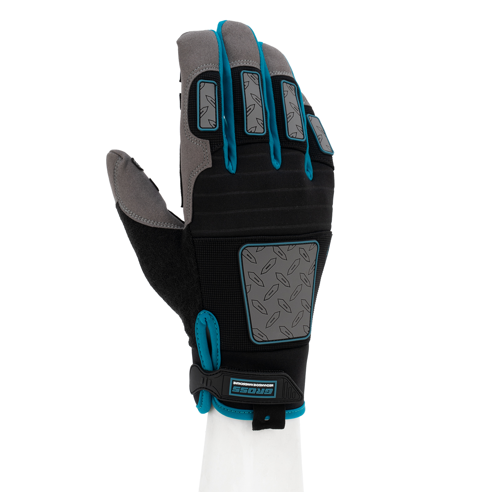 2шт перчатки универсальные, усиленные, с защитными накладками, deluxe, размер m (8) gross. Бренд: Gross Материал подклада: sbr, ПВХ, нейлон, полиуретан, полиэстер, спандекс Страна производства: Китай Длина, мм: 240 Тип упаковки: подвесная карта Длина в упаковке, мм: 350 Ширина в упаковке, мм: 130 Высота в упаковке, мм: 230 Вес (брутто), кг: 0.093 Перчатки: 1 пара Универсальные усиленные перчатки Gross DELUXE 90324 с защитными накладками, размера M (8), служат для защиты рук от механических повреждений и образования мозолей. Тонкие и износостойкие защитные накладки из ПВХ на тыльной стороне ладони и пальцах дополнительно предохраняют руки от механических повреждений. Формованные накладки на ладонях препятствуют появлению синяков и ссадин. Изделия могут использоваться при проведении строительных и ремонтных работ, а также во время занятий спортом или активного отдыха. Преимущества Надежный захват — дополнительные элементы на поверхности пальцев обеспечивают надежный захват скользких предметов. Удобная посадка — гибкие манжеты с застежкой типа velcro предотвращают сползание перчаток. Повышенная эластичность — перчатки плотно облегают кисти рук и не сковывают движения пальцев. Комфортная работа — благодаря сетчатой вставке руки не потеют, а специально разработанные швы Ergonomic Cut не натирают кожу ладоней.  развернуть описание ▼
