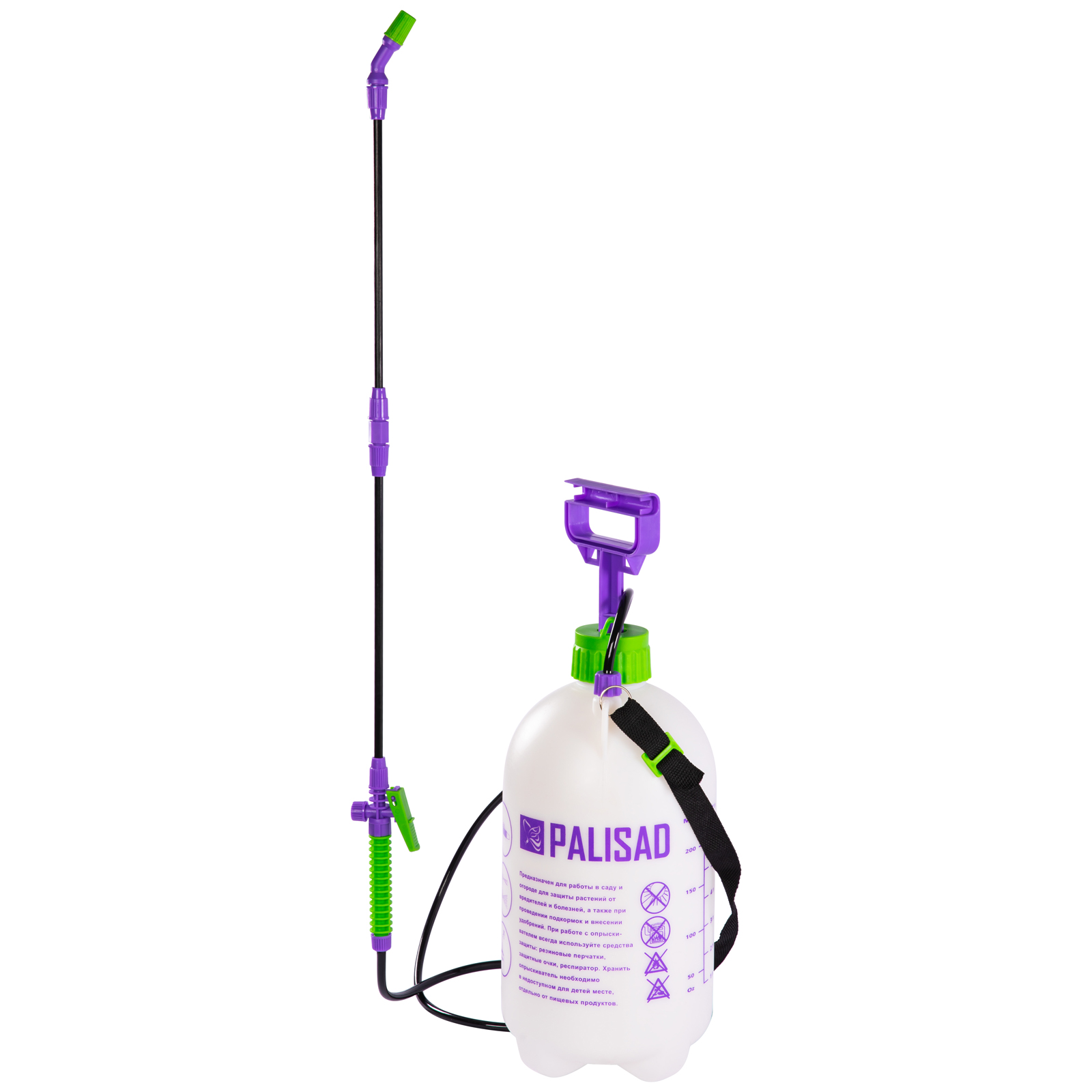 Ручной опрыскиватель Palisad 64750 с баком объемом 7 л, с насосом, шлангом и разбрызгивателем, используется для ухода за растениями на грядках, клумбах и в теплицах. Устройство предназначено для распыления пестицидов и внесения удобрений. Подача жидкости контролируется при помощи регулируемой распыляющей головки. Ремень для ношения на плече позволяет освободить руки для более комфортной работы.