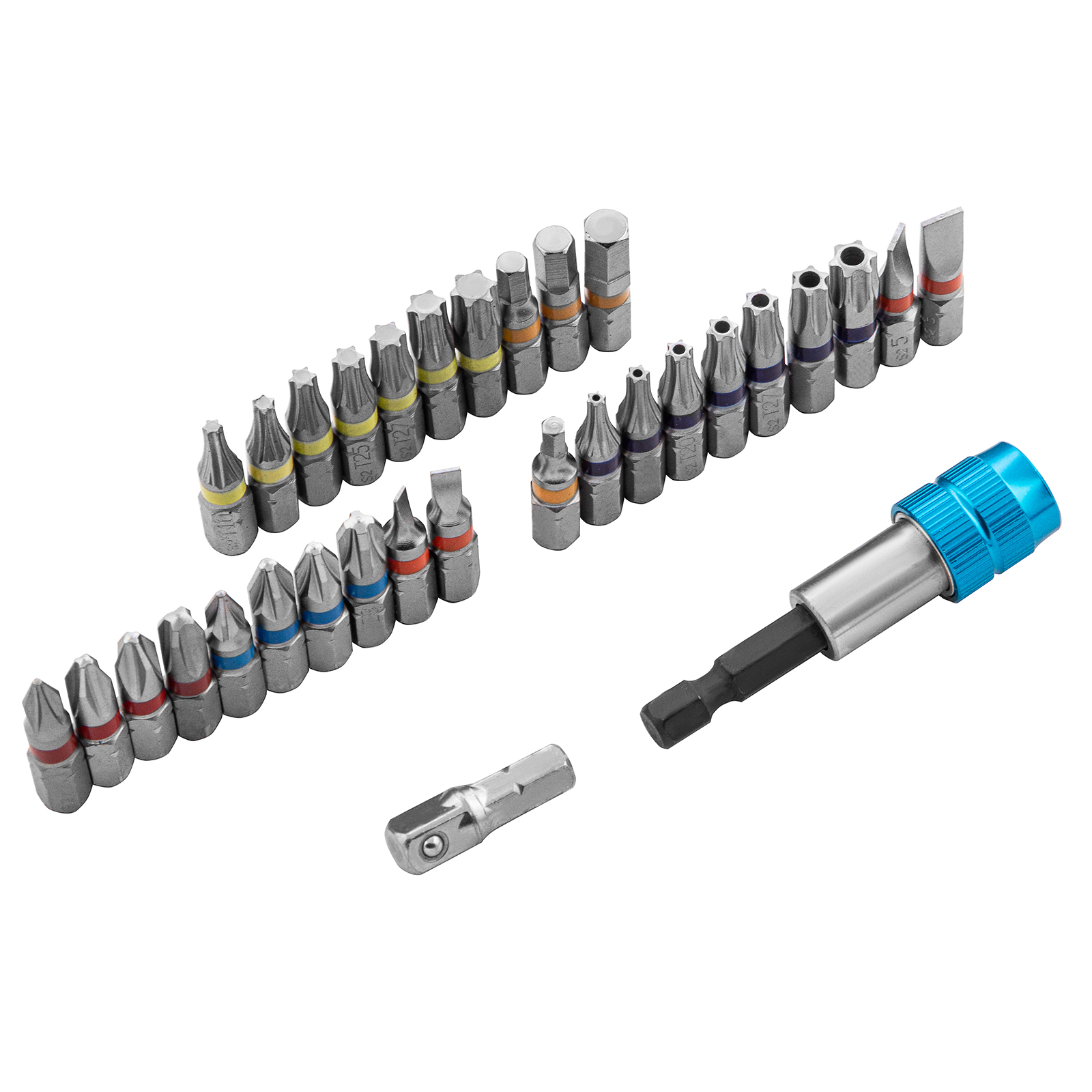 2шт набор бит, магнитный адаптер, сталь s2, пластиковый кейс, 32 предмета gross. Бренд: Gross Материал биты: легированная S2 Наконечник: HEX, PH, PZ, SL, TR, TT Область применения: подходит для шуруповерта Особенности: адаптер, магнитные свойства, профессиональные Размер хвостовика: 1u002F4 Тип замка: металл Тип хвостовика: прямой Страна бренда: Германия Страна производства: Тайвань Тип упаковки: пластиковый кейс Вес (брутто), кг: 0.4 Биты 25 мм: РН1, РН2 (2 шт), РН3, PZ1, PZ2 (2 шт), PZ3, SL3, SL4, SL5, SL6, H3, H4, H5, H6, T10, T15, T20, T25, Т27, Т30, Т40, TТ10, TТ15, TТ20, ТT25, ТТ27, ТТ30, ТТ40: 30 шт Держатель бит: 1 шт Набор бит с магнитным адаптером Gross 11363 из стали S2, в пластиковый кейсе, включает в себя 32 предмета для монтажа и демонтажа резьбовых соединений. Набор подойдет для выполнения ремонтных, монтажных и слесарных работ, в том числе для сборки мебели, бытовых электроприборов, самокатов и велосипедов. В комплект входят биты самых актуальных размеров, переходник с шестигранника на квадрат 1/4 дюйма и магнитный адаптер для бит. Преимущества Широкая комплектация — в одном наборе представлено 6 типов бит: PH и PZ калибров 1-3, SL калибров 3, 4, 5, 6, TORX и TORX Tamper (10, 15, 20, 25, 27, 30, 40), HEX 3-6 самые ходовые размеры PH2 и PZ2 поставляются по 2 штуки. Долговечность — высококачественная японская легированная сталь S2 обеспечивает повышенную прочность и износостойкость бит. Прочная фиксация — за счет металлического шарика переходник надежно удерживает торцевые головки без риска их выпадения (в комплект не входят). Удобная работа даже в труднодоступных местах — битодержатель с магнитом и быстрозажимным механизмом обеспечивает устойчивую фиксацию насадок. Высокий ресурс и защита от разрушения — битодержатель выполнен из высококачественной стали и хромирован для исключения коррозии. Удобное хранение и перевозка — комплект поставляется в кейсе из ударопрочного пластика с металлическим замком-застежкой. Быстрый подбор нужной насадки — схема комплекта по типоразмерам нанесена на крышку кейса.  развернуть описание ▼
