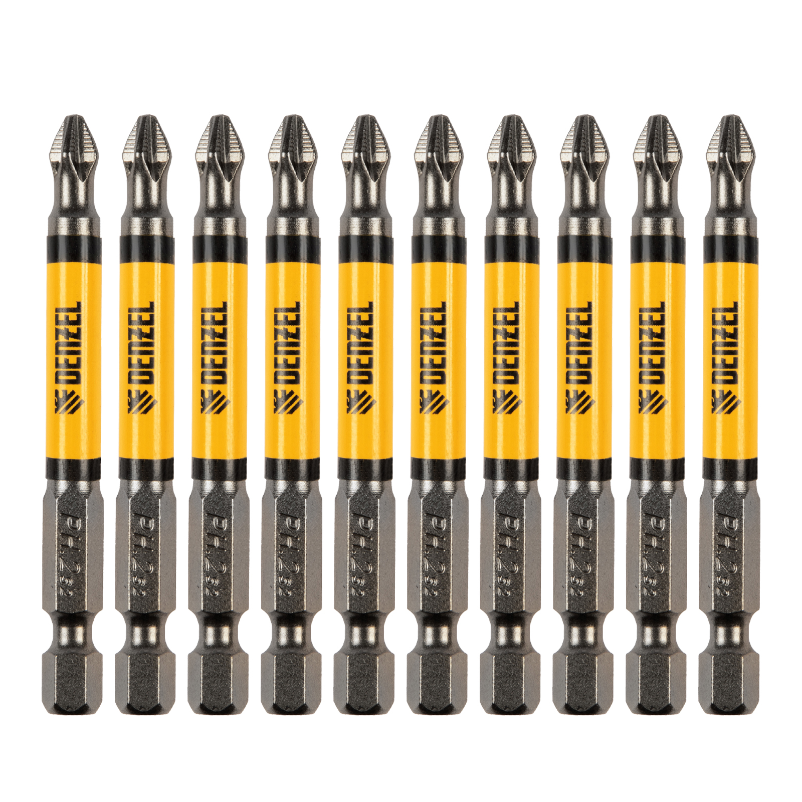 Шт бита ph2х70, сталь s2, цилиндр., 10 шт. е 6,3 denzel. Бренд: DENZEL Материал биты: легированная S2 Наконечник: PH2 Особенности: магнитные свойства, профессиональные, с насечкой Размер хвостовика: 1u002F4 Тип хвостовика: шестигранный Страна производства: Тайвань Длина, мм: 70 Тип упаковки: двойной блистер Длина в упаковке, мм: 164 Ширина в упаковке, мм: 83 Вес (брутто), кг: 0.162 Биты PН2x70 мм: 10 шт Набор односторонних бит с круглым профилем PH2 x 70 мм Denzel 11643 — это 10 сменных насадок из стали S2 с крестообразными шлицами и шестигранными хвостовиками 1/4. Профессиональная оснастка рассчитана на работу с шуруповертом, обеспечивает быстрый монтаж и демонтаж резьбовых соединений с углублением PH2. Преимущества Долговечность — насечки на шлице препятствуют проскальзыванию и «слизыванию» бит, дополнительно усиливают контроль при работе с саморезами по дереву. Высокая результативность даже в ограниченном пространстве — благодаря удлиненному до 70 мм профилю битами удобно работать в труднодоступных местах. Устойчивость к деформации при больших нагрузках — биты изготовлены из японской легированной стали S2 повышенной прочности и закалены до твердости 58 HRC. Намагниченный шлиц облегчает работу — крепеж удерживается битой, поэтому свободной рукой можно придерживать закрепляемую поверхность. Антикоррозионные свойства — никелированное покрытие увеличивает срок службы насадок. 10 бит в комплекте — набора хватит на целую бригаду. Удобная упаковка — оснастка поставляется в двойном блистере с европодвесом.  развернуть описание ▼