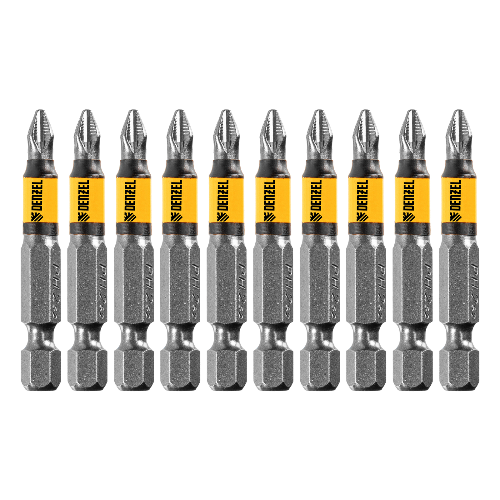 Бита ph2х50, сталь легированная s2, 10 шт., круглый профиль, отрывная упаковка, е 6,3 denzel. Бренд: DENZEL Материал биты: легированная S2 Наконечник: PH2 Особенности: магнитные свойства, профессиональные Размер хвостовика: 1u002F4 Тип хвостовика: шестигранный Страна производства: Тайвань Длина, мм: 50 Тип упаковки: двойной блистер Длина в упаковке, мм: 310 Вес (брутто), кг: 0.138 Биты PH2x50 мм: 10 шт Набор бит PH2 х 50 мм Denzel 11679 состоит из 10 наиболее востребованных крестообразных насадок из стали S2, с хвостовиком 1/4, и предназначен для шуруповертов и отверток-адаптеров. Биты используются при монтаже и демонтаже большинства саморезов по дереву, шурупов и др. За счет оптимальной геометрии биты способны ввинтить и извлечь большое количество крепежа без потери рабочих свойств. Преимущества Устойчивость к деформации при высоких нагрузках — биты изготовлены из японской легированной стали S2 и закалены до твердости 58 HRC. Высокоточное исполнение — оптимальная геометрия шлица и максимальный контроль на производстве в Тайване позволили добиться выверенности каждой биты и предотвратить проскальзывание рабочей части в головке крепежа. Удобная эксплуатация — намагниченный шлиц облегчает работу и позволяет направлять шуруповерт с насаженным крепежом одной рукой, а другой придерживать закрепляемую деталь. Антикоррозионные свойства — никелированное покрытие увеличивает срок службы насадок. Защита от подделок — цветное кольцо с логотипом ТМ Denzel на каждой бите подтверждает оригинальность товара. 10 бит в комплекте — набора хватит на целую бригаду. Удобная отрывная упаковка — можно использовать нужное количество насадок, не распаковывая весь набор.  развернуть описание ▼