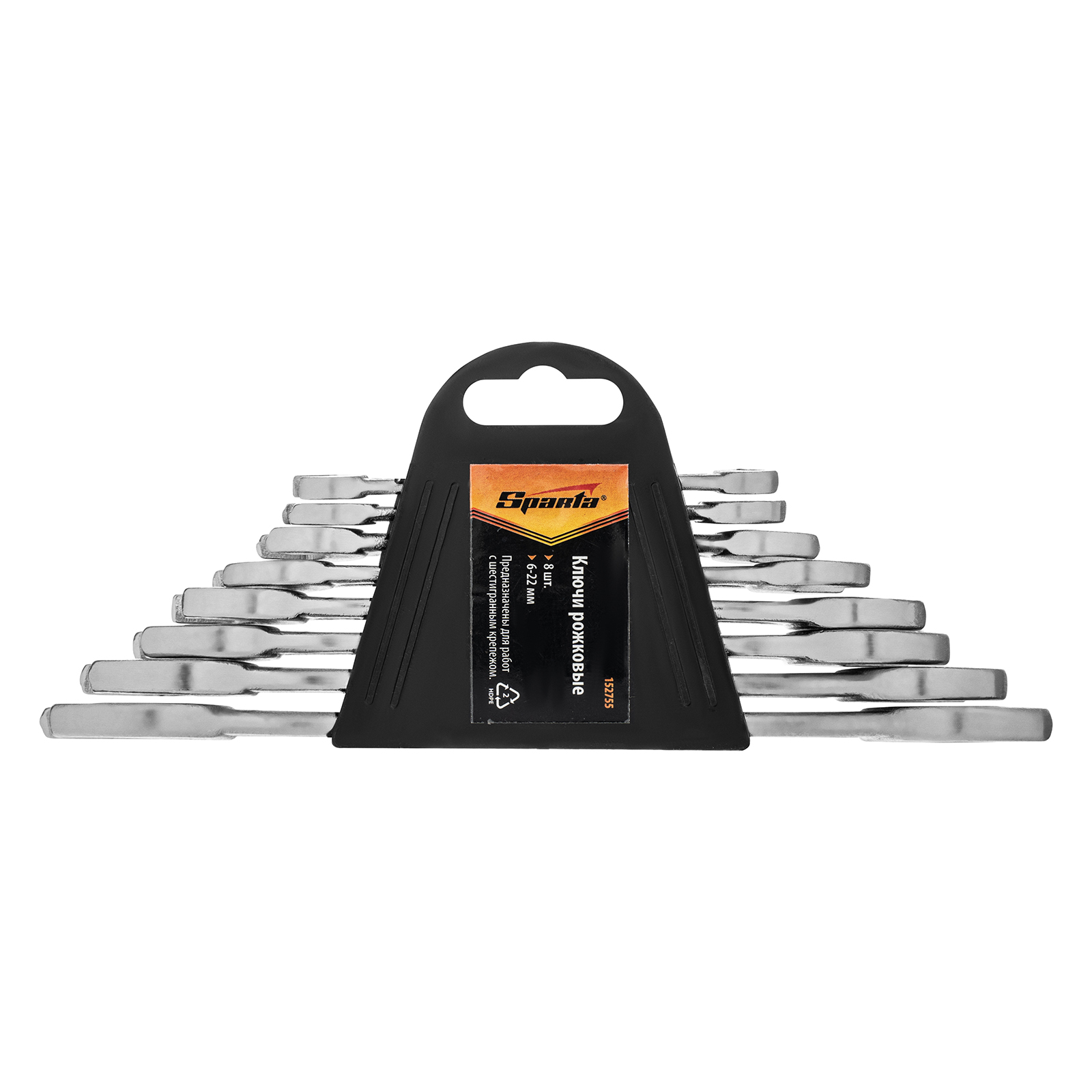 Шт набор ключей рожковых, 6 х 22 мм, 8 шт, хромированные Sparta