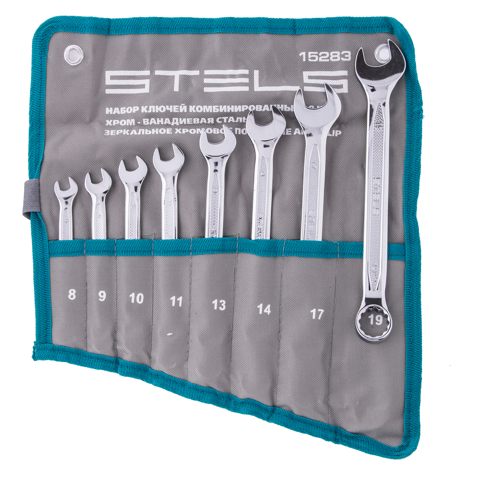 Шт набор ключей комбинированных 8 шт, 8-19 мм, антислип Stels