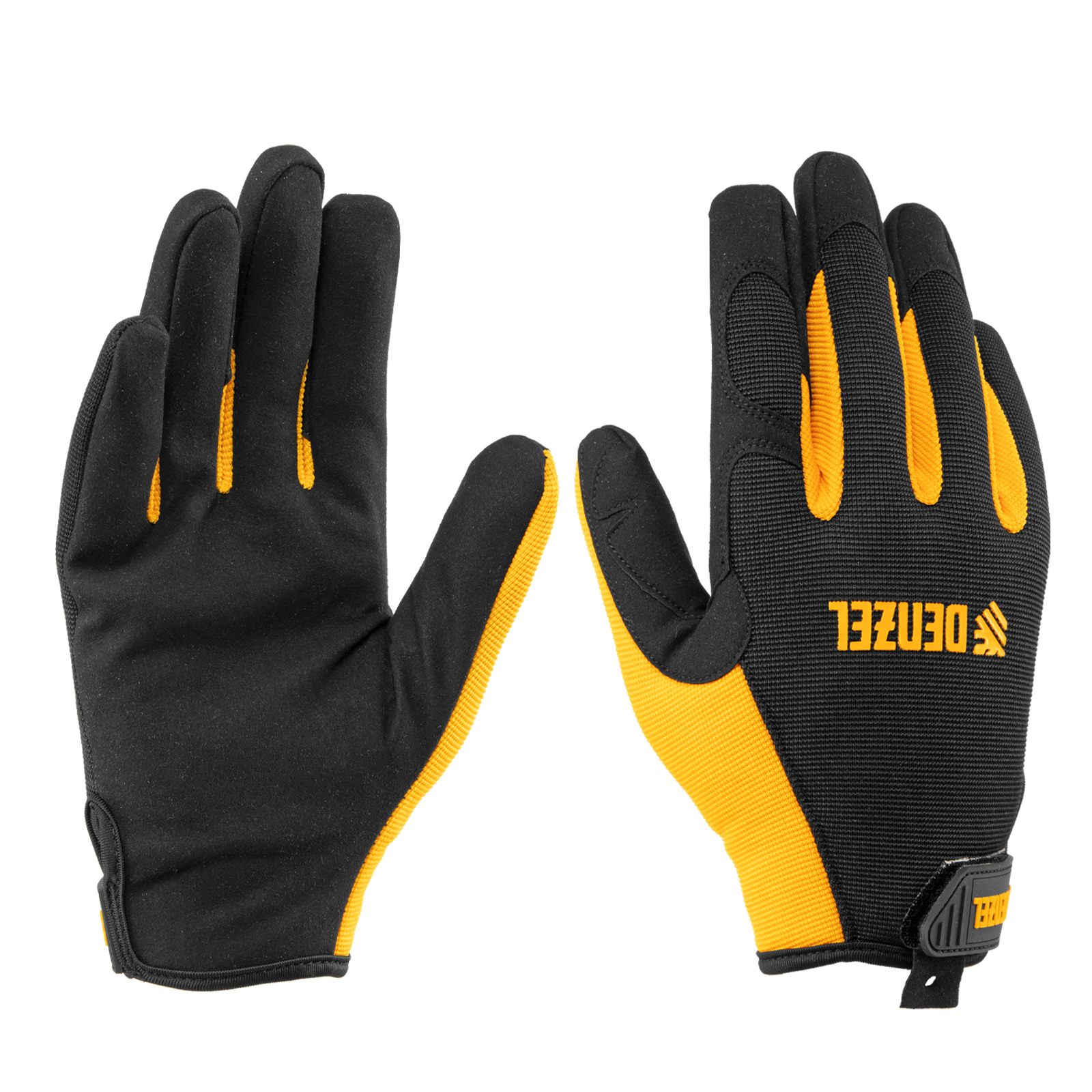 2шт перчатки универсальные на липучке, размер 10 denzel. Бренд: DENZEL Материал подклада: полиамид, поливинилхлорид, полиуретан, полиэстер, спандекс Цвет: черно-желтый Страна производства: Китай Длина, мм: 245 Ширина, мм: 127 Тип упаковки: подвесная карта Длина в упаковке, мм: 345 Ширина в упаковке, мм: 160 Вес (брутто), кг: 0.07 Перчатки: 1 пара Универсальные перчатки Denzel 67994 размера 10, с манжетами на «липучке», используются для работы со слесарным инструментом. Надежно защищают кожу рук от царапин и мозолей. Пригодятся в мастерской, дома или в гараже. Преимущества Износостойкость — перчатки устойчивы к истиранию благодаря прочному материалу (сочетание полиэстера, спандекса, полиамида, нейлона, полиуретана и поливинилхлорида). Плотная посадка — манжеты на «липучках» обеспечивают надежную фиксацию. Комфортная эксплуатация — перчатки анатомического кроя плотно облегают кисти рук и не стесняют движения пальцев.  развернуть описание ▼