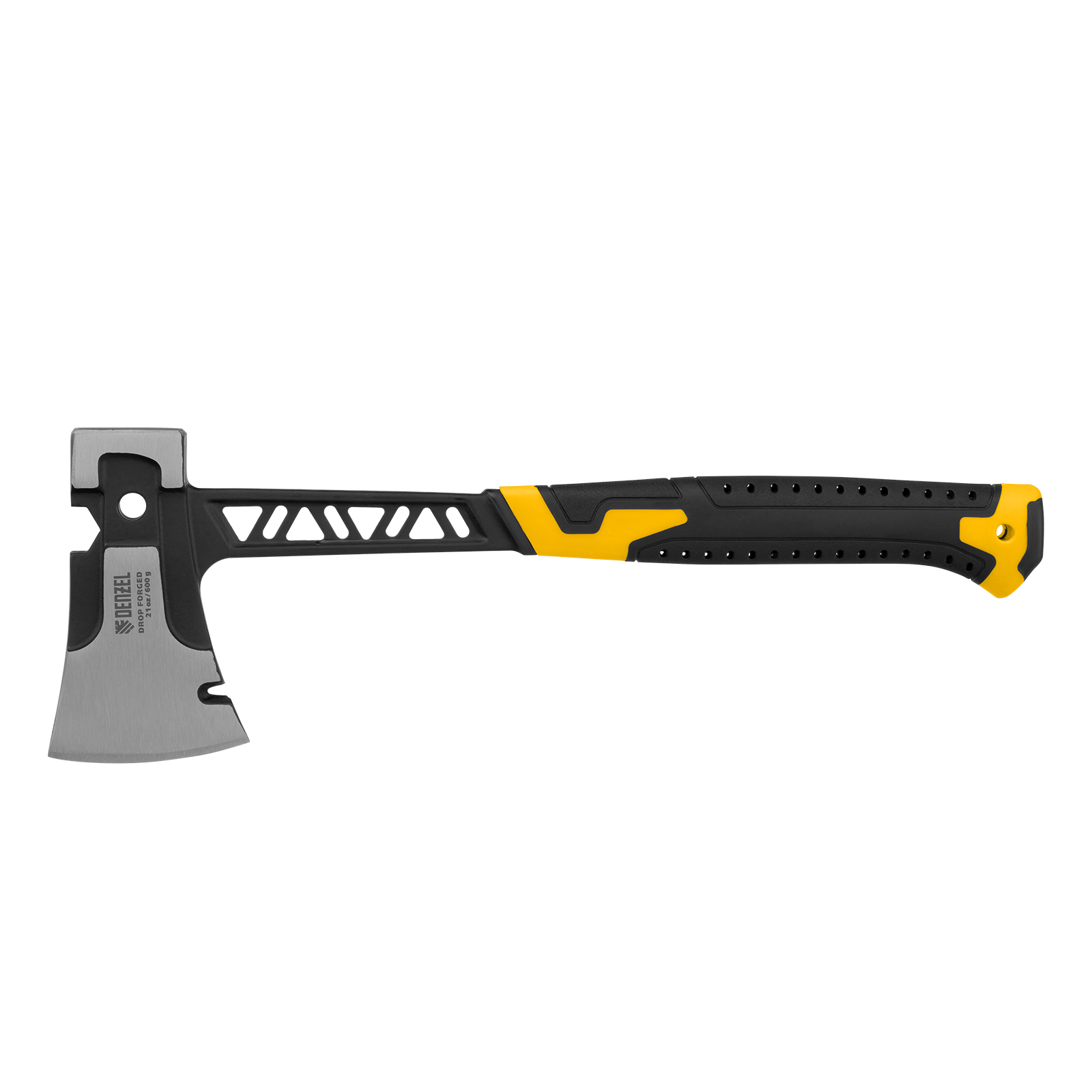 Топор цельнокованый 600 г, двухкомпонентная обрезиненная рукоятка denzel. Бренд: DENZEL Материал полотна: сталь 45 Материал рукояти: металл, пластик, резина Особенности: кованый Страна производства: Китай Вес полотна, г: 600 Тип упаковки: подвесная карта Длина в упаковке, мм: 388 Ширина в упаковке, мм: 131 Вес (брутто), кг: 0.94 Топор: 1 шт Цельнокованый топор Denzel 21499 с рабочей частью весом 600 г и двухкомпонентной обрезиненной рукояткой предназначен для рубки бревен и веток, колки дров, обработки древесины и т.д. Будет полезен в быту и на строительной площадке. Преимущества Повышенная прочность — топор целиком выкован из стали C45. Высокий ресурс — рабочая часть твердостью 50-55 HRC устойчива к износу. Эргономичность — обрезиненная рельефная рукоятка обеспечивает удобный хват и не выскальзывает из ладони.  развернуть описание ▼