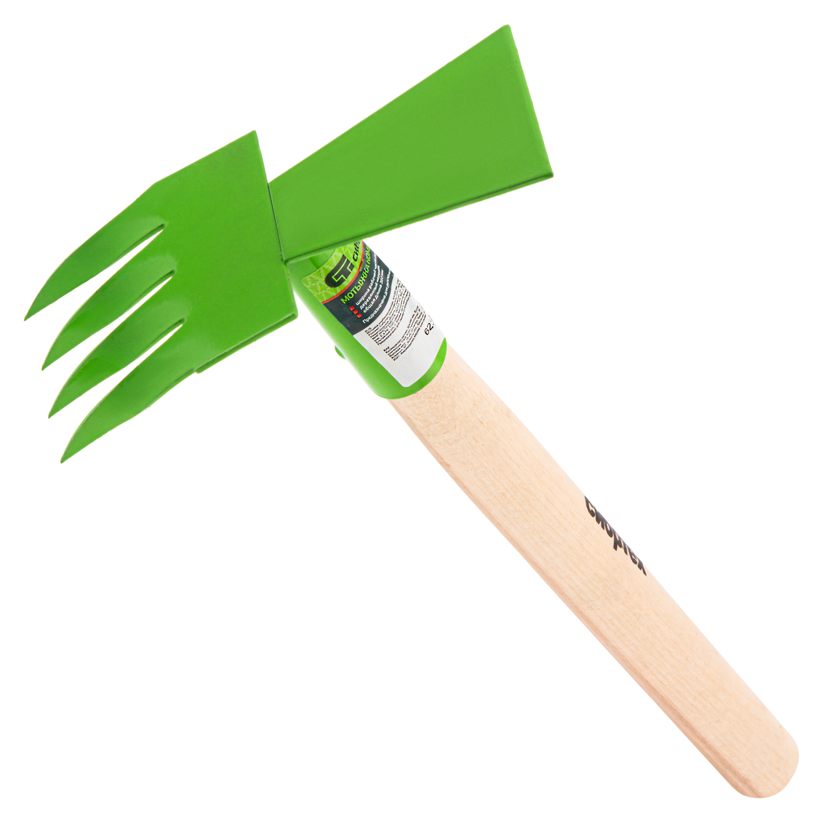 Шт 2шт мотыжка комбинированная, 80 х 380 мм, стальная, деревянная рукоятка, агроном, сибртех. Бренд: Сибртех Материал рукояткиu002Fчеренка: древесина Покрытие рабочей части: эмаль порошковая Рукоятка: однокомпонентная Серия: Агроном Тип крепления для рукояткиu002Fчеренка: саморез Цвет рабочей части: зеленый Вес (брутто), кг: 0.33 Мотыжка: 1 шт Комбинированная стальная мотыжка Сибртех АГРОНОМ 62342 длиной 380 мм, с деревянной рукояткой, имеет рабочую часть шириной 80 мм и используется для обработки почвы на небольших участках. Рабочая часть представляет собой сочетание трапеции и 4 зубьев. Трапециевидная часть пропалывает землю, срезая сорняки. Витые зубья разбивают земляные комочки, обеспечивая эффективную аэрацию почвы. Инструмент идеально подходит для ухода за клумбами и грядками. Преимущества Долговечность — рабочая часть из конструкционной углеродистой стали устойчива к износу. Защита от разрушения — покрытие из порошковой эмали предохраняет инструмент от коррозии и механических повреждений. Надежность — черенок зафиксирован саморезом, поэтому не выпадет из тулейки. Эргономичность — отшлифованная деревянная рукоятка удобно ложится в руки. Малый вес 330 г — длительная работа не вызывает ощущение усталости. Удобное хранение — в рукоятке имеется отверстие для подвешивания мотыжки.  развернуть описание ▼