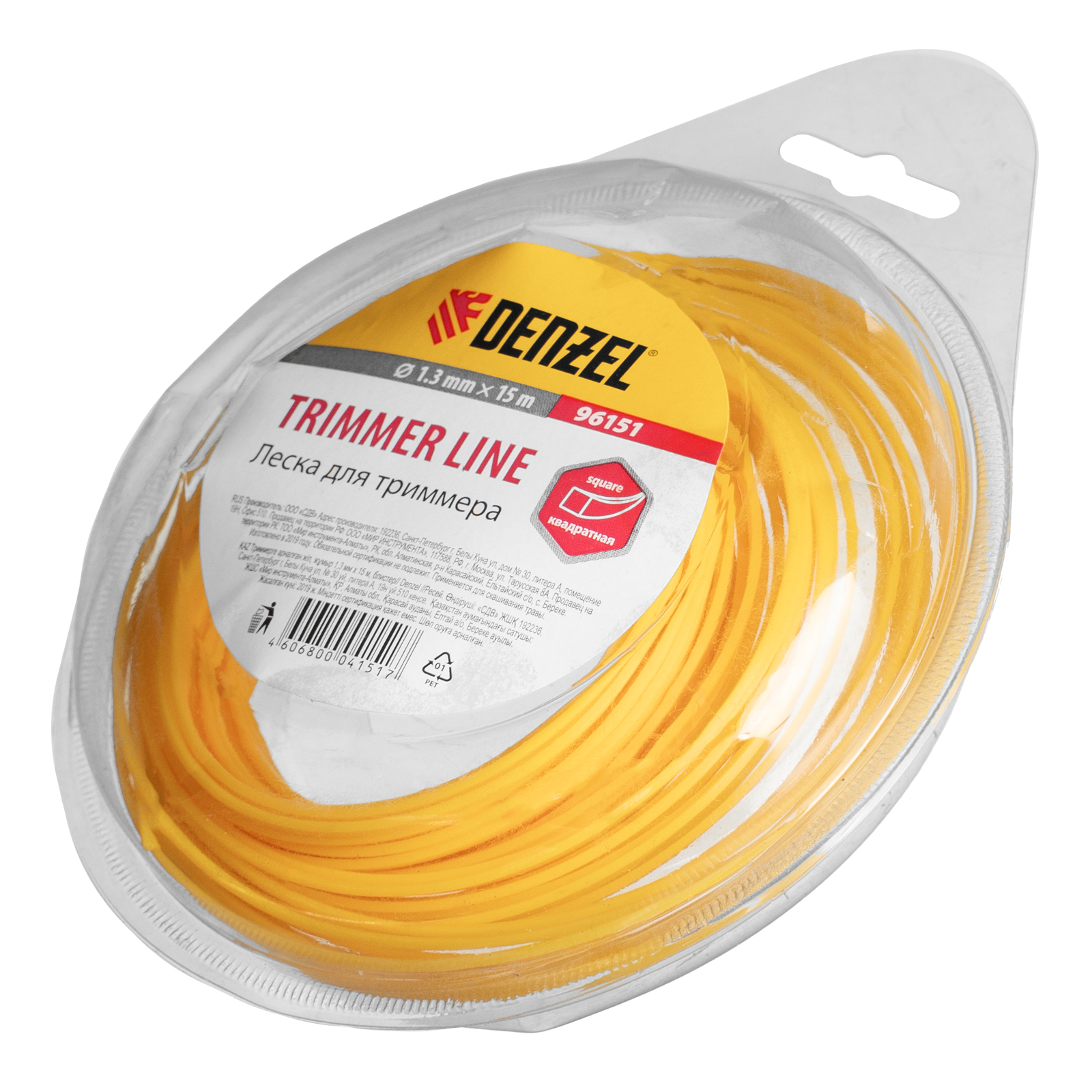 Леска квадратная Denzel 96151 диаметром 1,3 мм и длиной 15 м заправляется в катушку электрического триммера мощностью 250-300 Вт. Предназначена для скашивания молодой газонной травы.