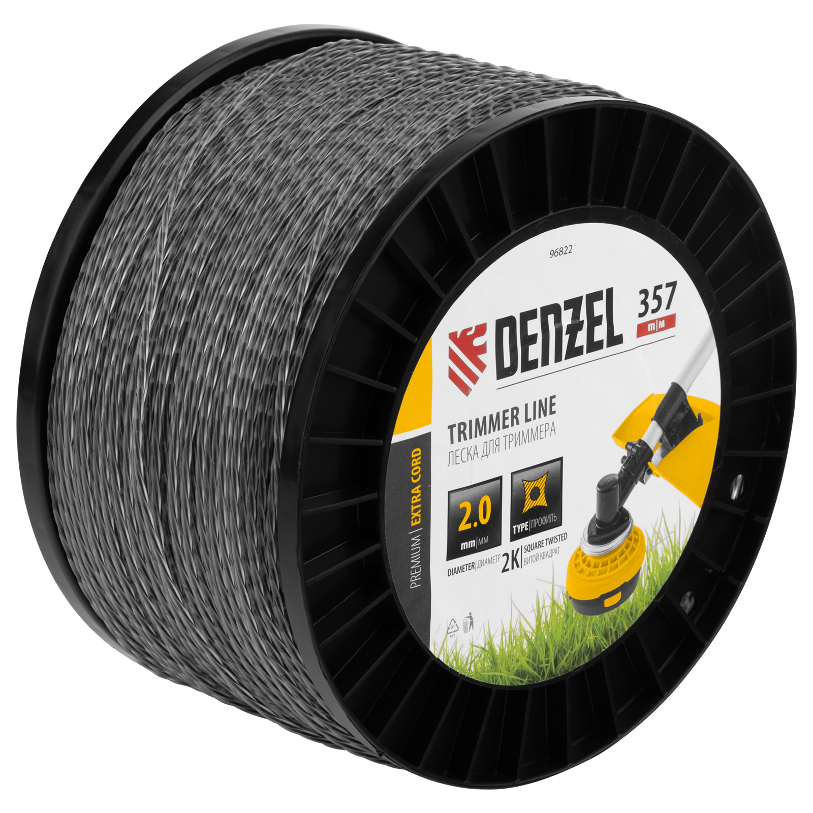 Шт 2шт леска для триммера двухкомпонентная витой квадрат, 2,0мм х 357м, на din катушке extra cord denzel.