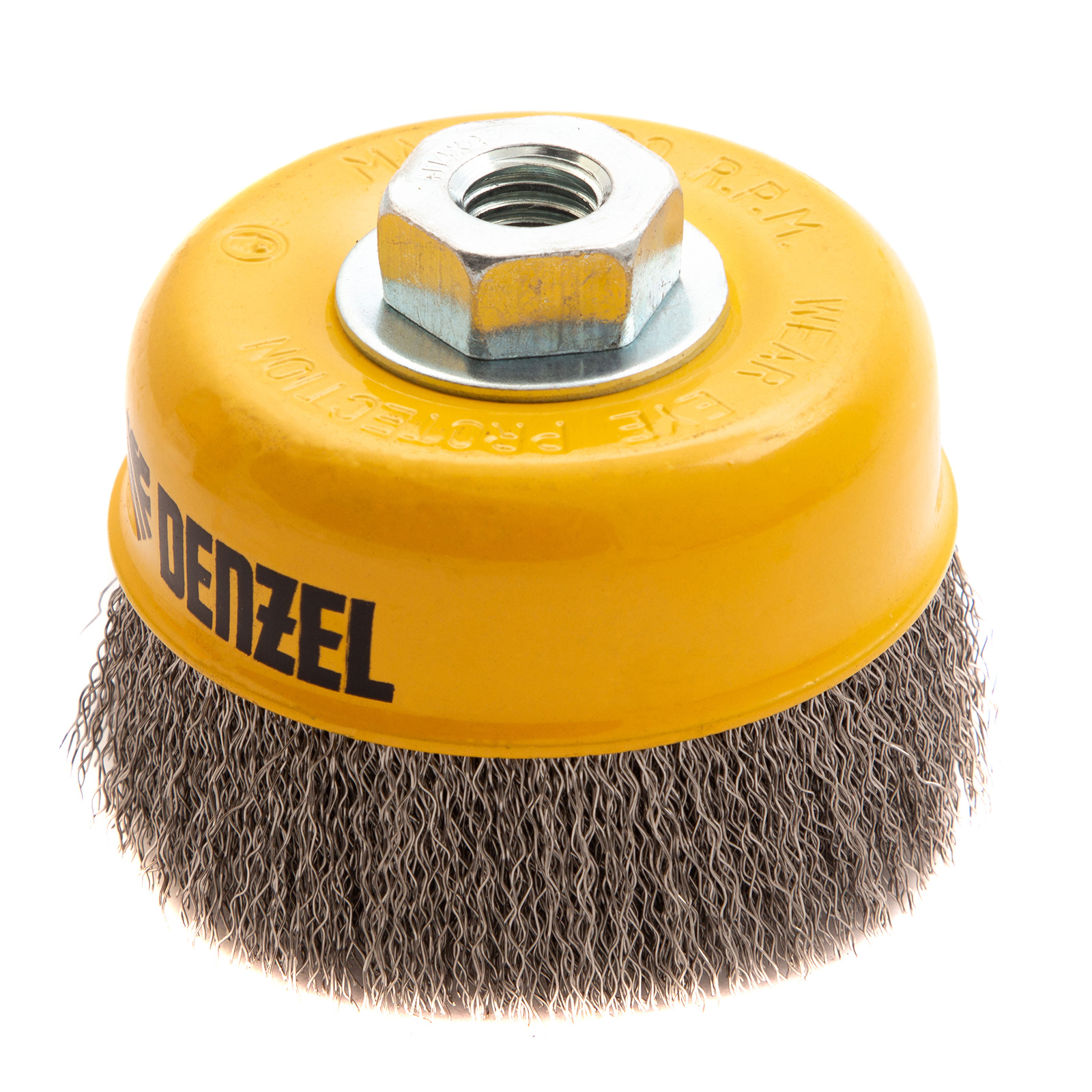 Шт 2шт щетка для ушм, 100 мм, чашка, витая нержавеющая проволока 0.3 мм, м14 denzel. Бренд: DENZEL Диаметр проволоки: 0,30 мм Марка стали: нержавеющая Тип проволоки: витая нержавеющая Форма: чашка Страна производства: Китай Тип упаковки: картонная коробка Длина в упаковке, мм: 135 Вес (брутто), кг: 0.36 Щетка: 1 шт Щетка для УШМ «Чашка» Denzel 746053 с гайкой М14, диаметром 100 мм, с щетиной из витой нержавеющей проволоки диаметром 0,3 мм, позволяет быстро и аккуратно очистить металлическую, деревянную или пластиковую поверхность от незначительных загрязнений и ржавчины, а также удалить остатки лакокрасочных материалов, сделать поверхность шероховатой или матовой. Насадка предназначена для очистки плоских участков большой площади. Подходит для обработки нержавеющей стали. Щетка устанавливается на вал углошлифовальной машины (УШМ) и предназначена для работы с максимальной скоростью 8500 об/мин. Во время работы обязательно соблюдение техники безопасности и использование средств индивидуальной защиты. Преимущества Высокое качество выполняемых работ — щетина изготовлена из нержавеющей стали AISI 201, поэтому ее частицы не вызывают микрокоррозии обрабатываемой поверхности. Деформационная стойкость — проволока имеет витую форму и выдерживает интенсивную эксплуатацию. Использование в условиях повышенной влажности — щетина из «нержавейки» и покрытый эмалью корпус не подвержены коррозии. Быстрая установка и замена насадки — для крепления на вал УШМ предусмотрена гайка М14. Надежность — корпус и гайка усилены, поэтому щетка устойчива к повышенным нагрузкам. Гарантированное качество — щетка изготовлена под строгим технологическим контролем.  развернуть описание ▼