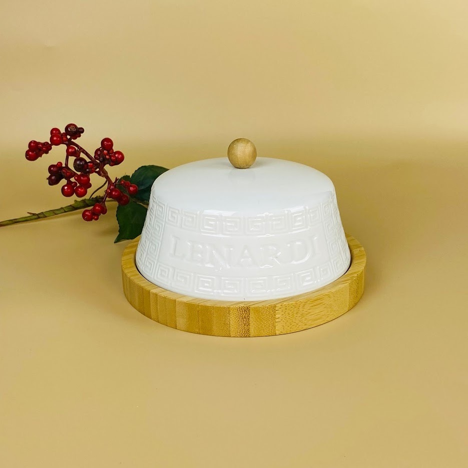 Маслёнка фарфоровая на бамбуковой подставке BellaTenero, 320 мл, цвет белый Чайный сервиз 7пр. на подставке в под.уп. Фарфор,бамбук