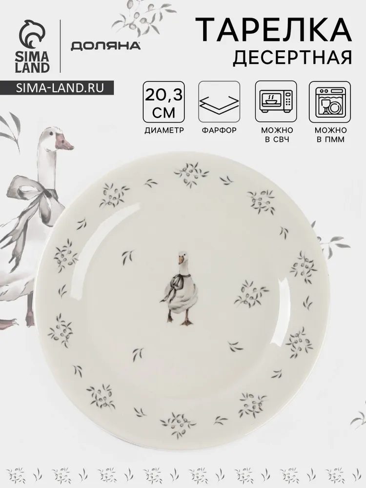 2шт тарелка десертная доляна гуси , D 20.3 см, фарфор, белая