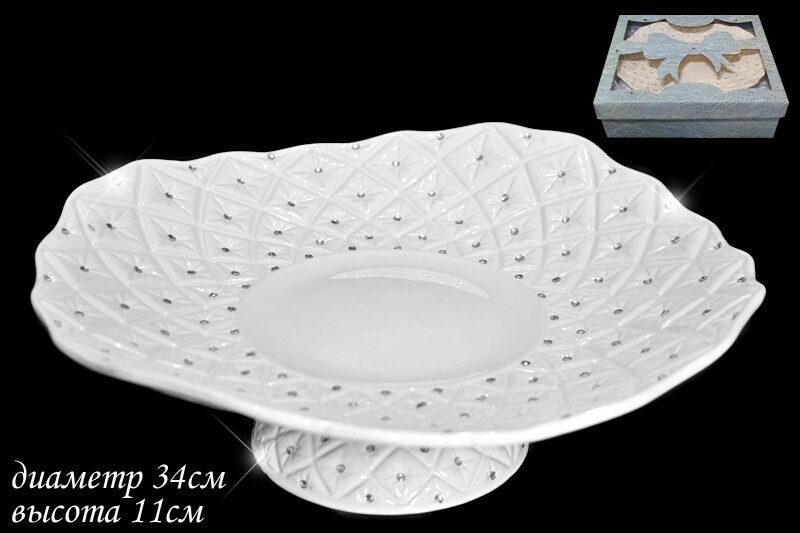 2шт блюдо на ножке 34см. северное сияние в подарочной упаковке керамика Lenardi