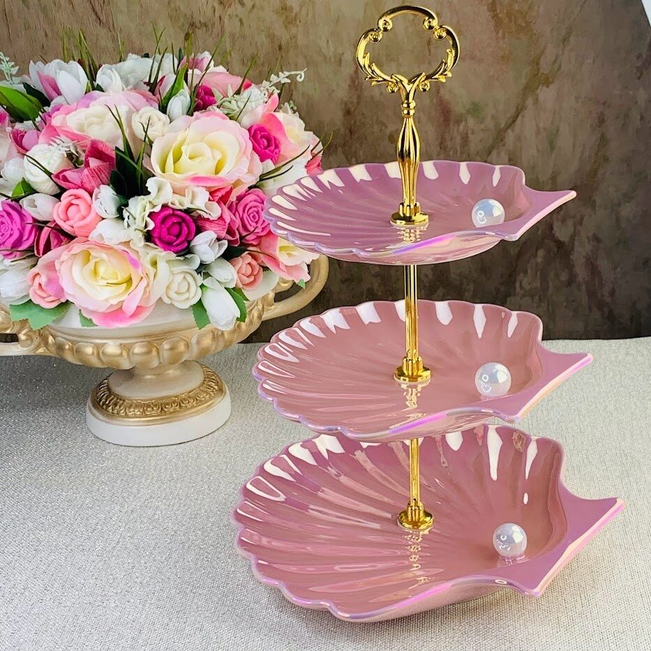 2шт трехъярусная этажерка перламутр в подарочной упаковке фарфор Lenardi