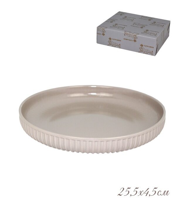 2шт форма (тарелка) круглая 25,5х4,5 см. в подарочной упаковке lenardi. Жаропрочный фарфор - серия представлена в виде прямоугольных, квадратных, овальных и круглых блюд разного объема, круглых кастрюль и порционных формочек с пластиковой крышкой. Посуду можно использовать в духовке и микроволновой печи. Пища при этом сохраняет естественный вкус и аромат. Посуду можно мыть в посудомоечной машине, а качественная и прочная глазурь защищает блюда от царапин ножа и вилки. ВНИМАНИЕ! Температура приготовления пищи в посуде из фарфора не должна превышать t220C градусов. Категорически запрещается ставить посуду на конфорки электрической плиты или на открытое пламя. Посуду, в которой находились замороженные или охлажденные продукты, не следует сразу из холодильника помещать в горячую духовку.