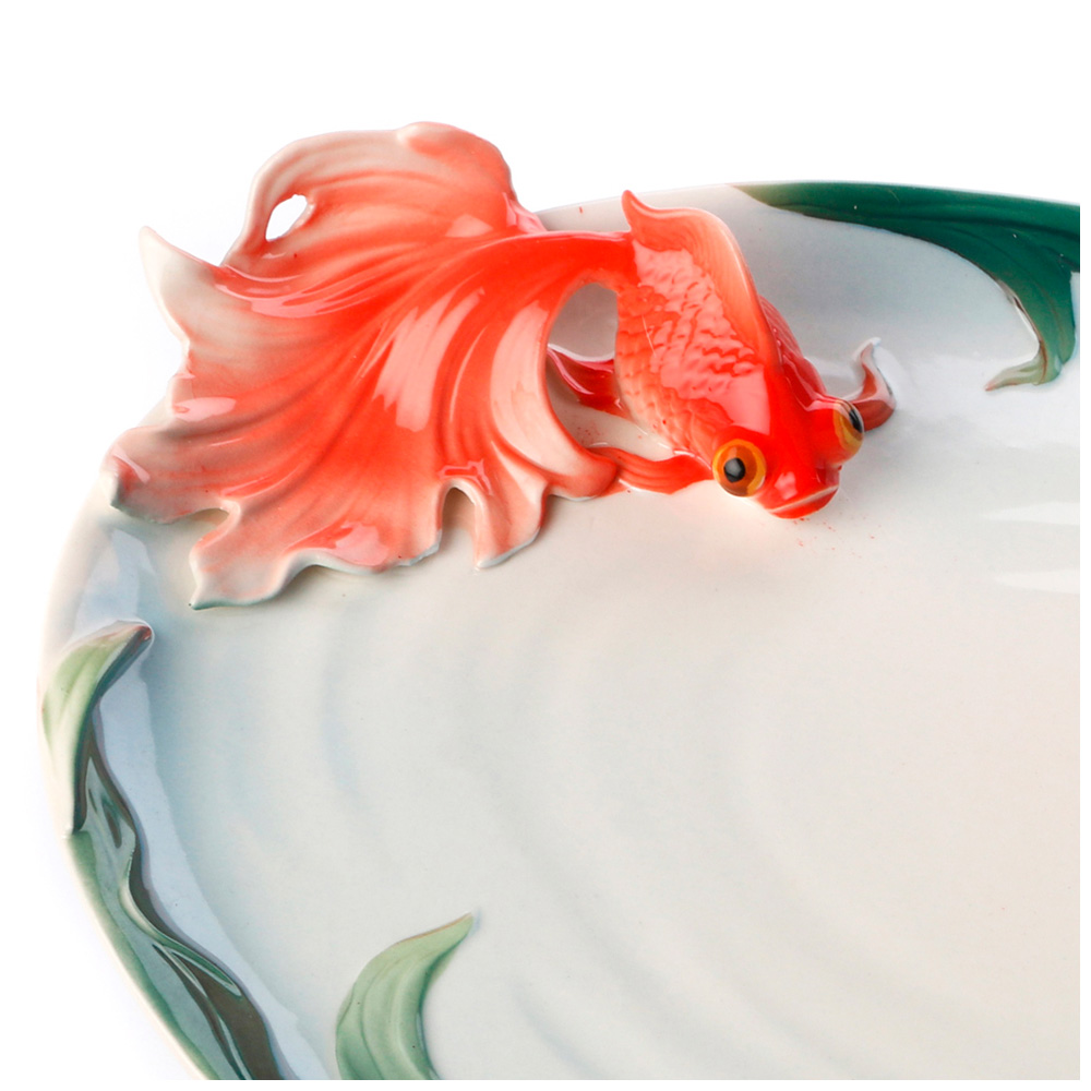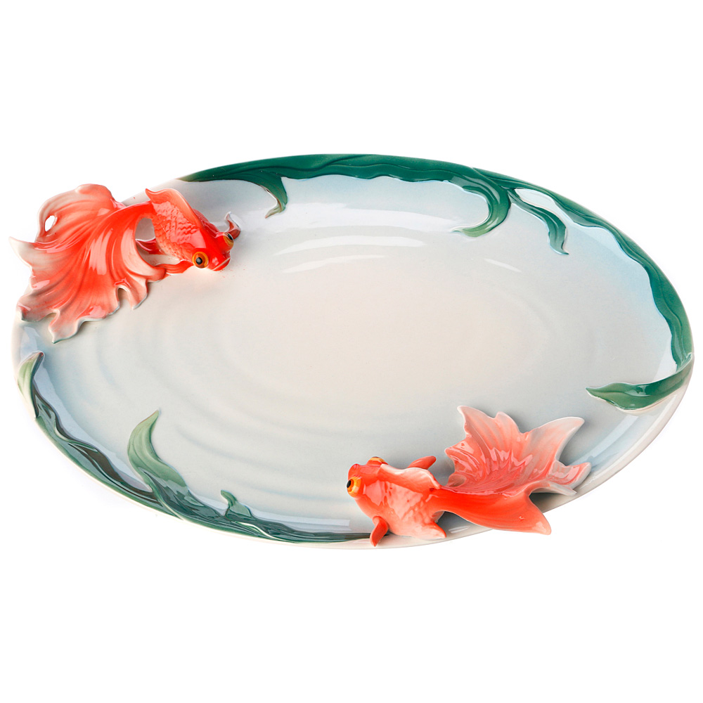 Блюдо фарфор золотая рыбка 32*22 см.под.упак. БЛЮДО ЗОЛОТАЯ РЫБКА 32*22 СМ TM Lefard предлагает посуду и предметы сервировки из качественного фарфора. Дизайн и декор изделий разработан и воплощен в жизнь командой профессиональных дизайнеров и технологов. Яркий и красочный внешний вид изделий сделает любой стол праздничным. Порадуйте себя и близких уникальными предметами сервировки. Посуда прошла сертификацию. Безопасна для контакта с пищевыми продуктами. Нельзя ставить в микроволновую печь, не рекомендуется мыть в посудомоечной машине, ставить в холодильник или духовой шкаф. Длина: 22 см Материал: Фарфор Микроволновая печь: Нет Посудомоечная машина: Нет Серия: Золотая рыбка Ширина: 32 см Бренд: Lefard Страна: КИТАЙ Вес: 1.094 кг Длина коробки: 34 см Ширина коробки: 24 см Высота коробки: 6 см
