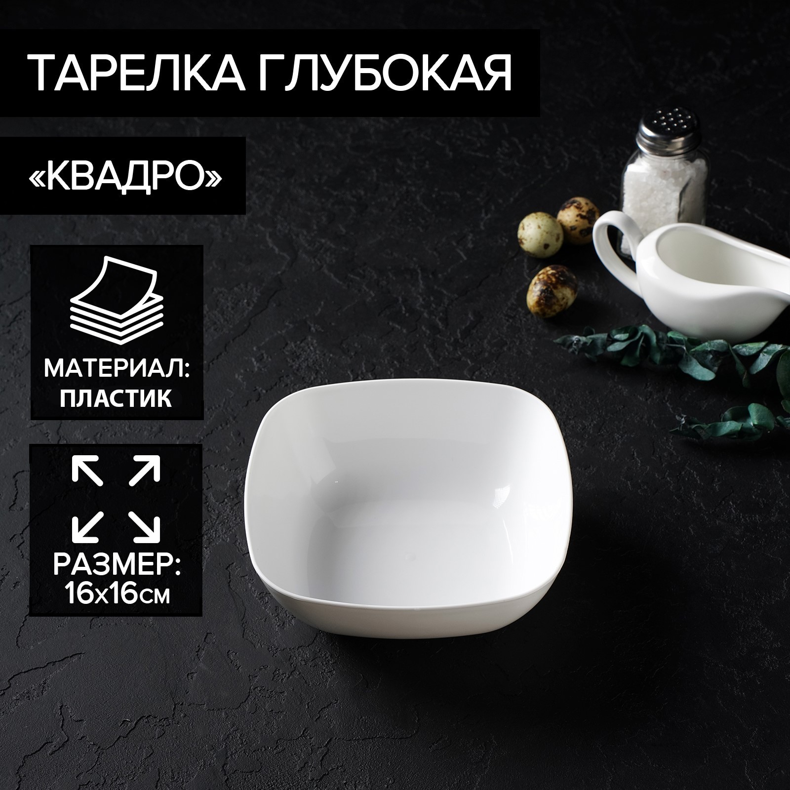 4шт тарелка глубокая альтернатива «квадро», 800 мл, 16×5.5 см, пластик, белая