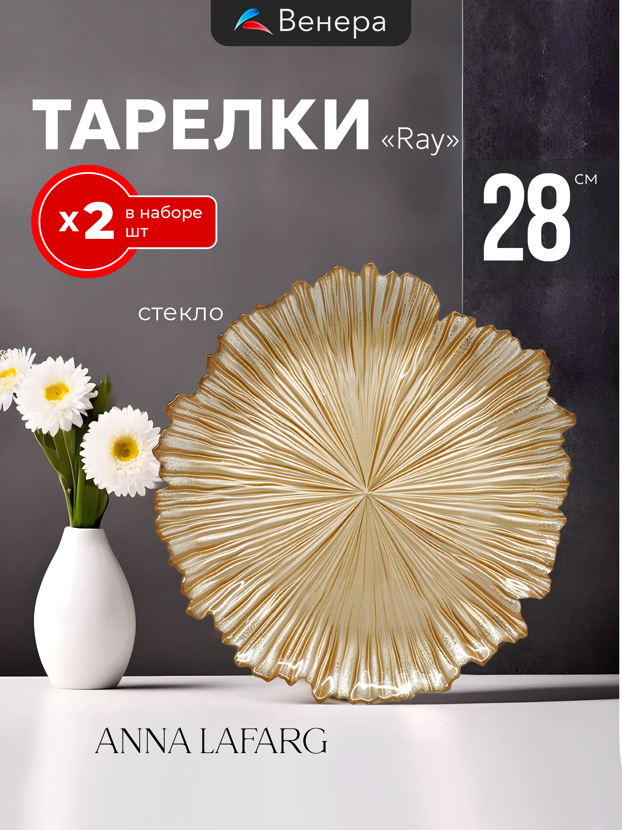 2шт стеклянная обеденная тарелка 28 см., Anna Lafarg, Ray
