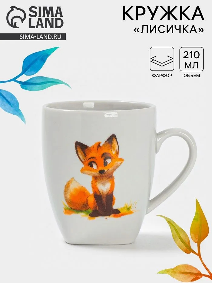 2шт кружка дулевский фарфор лисичка, 210 мл, белая