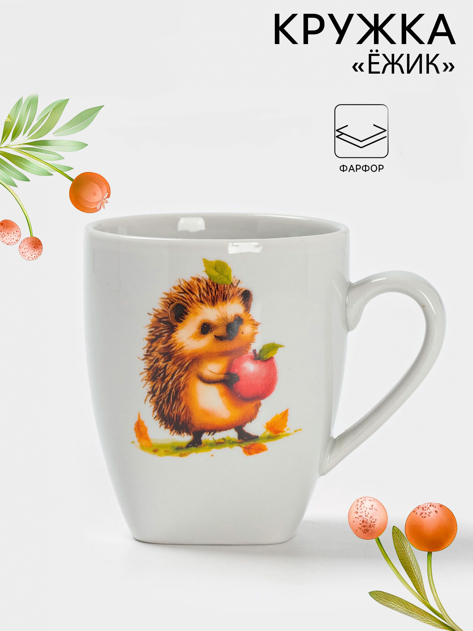 4шт кружка дулевский фарфор ёжик, 210 мл, белая