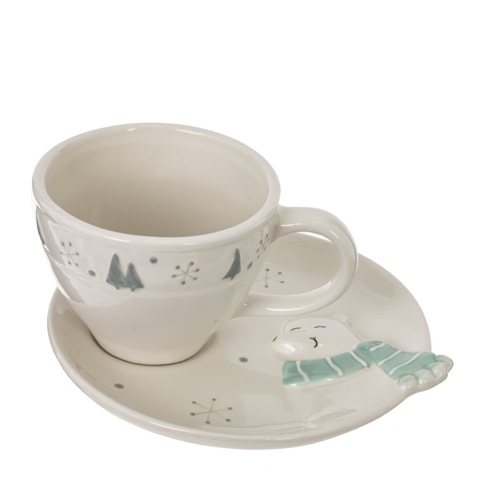 4шт набор чашка с блюдцем белый медведь, 245 мл, L16 W15 H9 см
