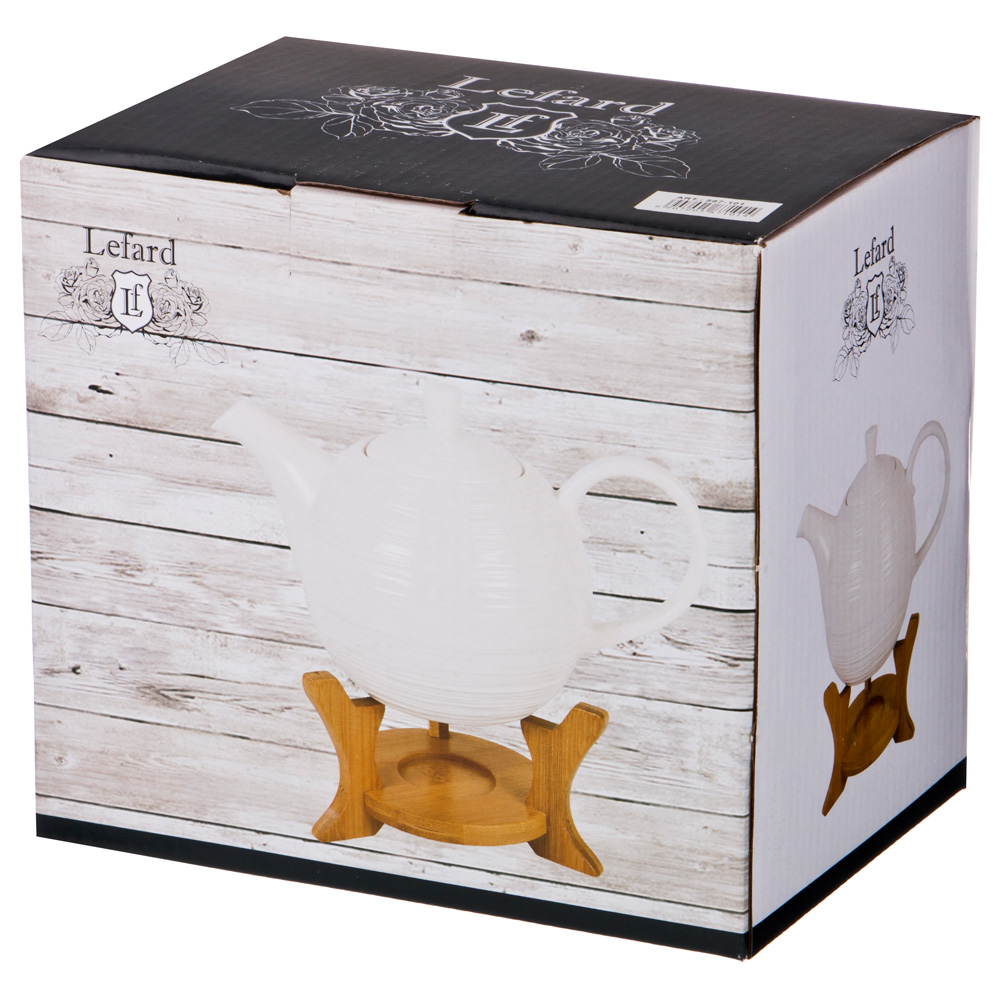 Чайник заварочный на подставке 1000 мл. ЧАЙНИК ЗАВАРОЧНЫЙ LEFARD NATIVE 850 МЛ. НА ПОДСТАВКЕ 21,5*12,5*20,5 СМ Торговая марка LEFARD представляет серию посуды NATIVE – это оригинальное сочетание эстетики естественных форм белого фарфора и универсальной функциональности бамбука. Красота и лаконичность этой коллекции, а так же экологичность материалов – залог успеха и любви среди покупателей. Вся серия изготовлена из фарфора Durable Porcelain, который является чрезвычайно износостойким и прочным, что делает его идеальным для ежедневного использования. Все изделия покрыты глазурью, благодаря чему имеют приятный блеск и надолго сохраняют свою новизну и не боятся мелких царапин. Бамбуковые элементы имеют приятную на ощупь текстуру и являются гармоничным дополнением к белому фарфору. Бамбук с белым – классика для Вашей кухни! Бамбуковые изделия прочны и неприхотливы в уходе (достаточно промыть под струей теплой воды и вытереть насухо – и они снова готовы к использованию). Рекомендации по использованию: Мыть с применением нейтральных моющих средств. Фарфор можно мыть в посудомоечной машине и использовать в микроволновой печи. Бамбуковые части запрещается мыть в посудомочной машине и использовать в микроволновых печах. Серия NATIVE – это оригинальная и изысканная посуда для сервировки стола, которая сочетает изумительный дизайн с экологичностью, прочностью и долговечностью. Материал: Фарфор/Бамбук Микроволновая печь: Да Объем, л: 1 Посудомоечная машина: Да Серия: Native Бренд: Lefard Страна: КИТАЙ Вес: 1.000 кг Длина коробки: 20 см Ширина коробки: 14 см Высота коробки: 18 см